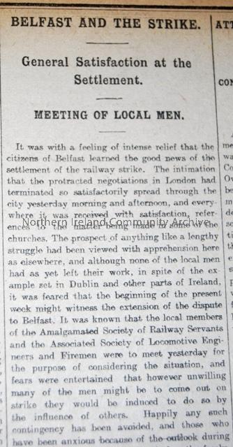 Newspaper article in The Belfast Newsletter covering a story of strike action in Belfast. 21.08.1911.