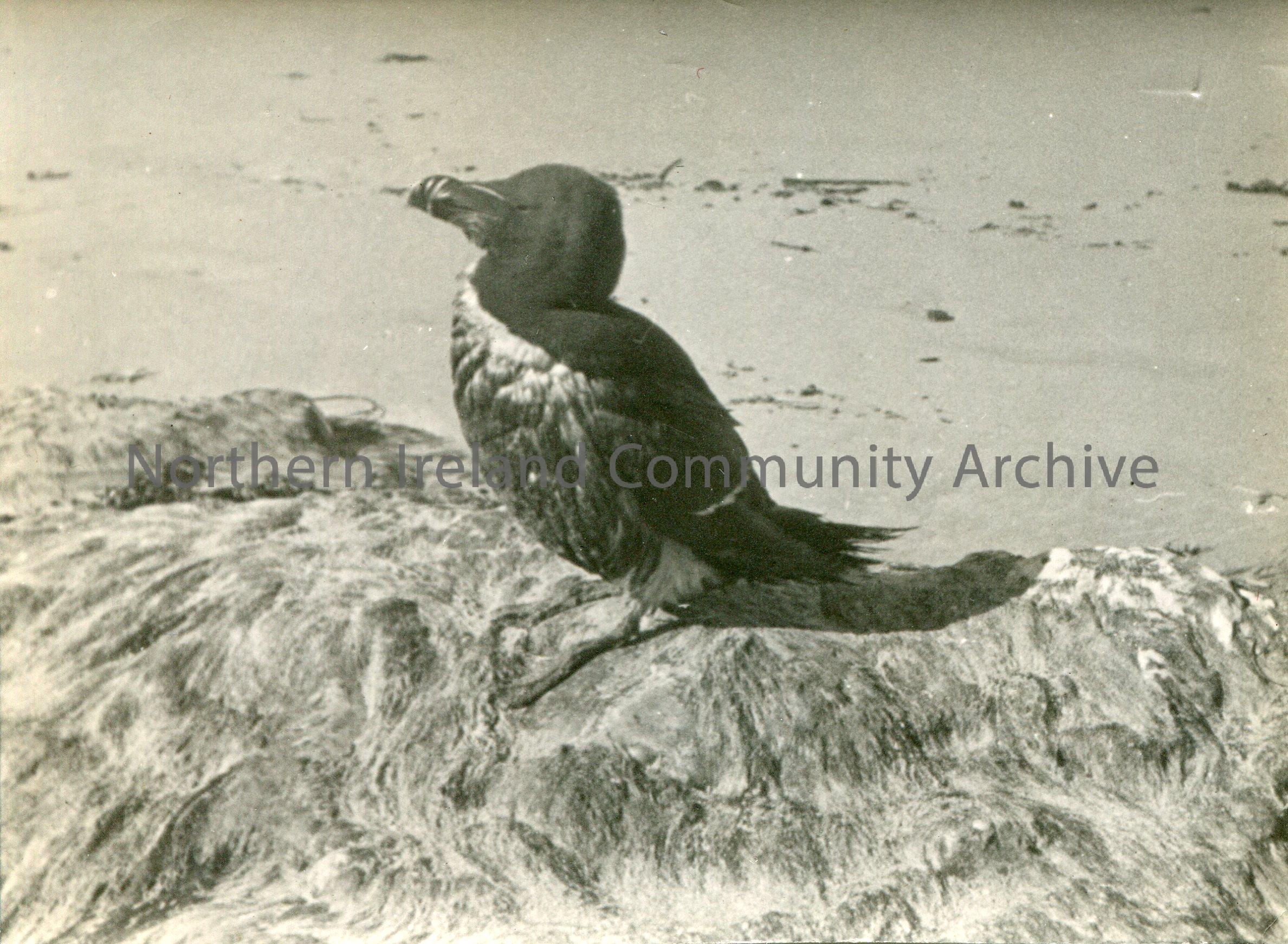 Bird with dark feathers standing on a rock.