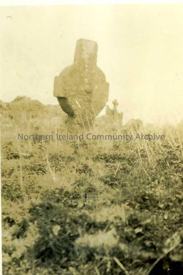 black and white image of old cross monument
