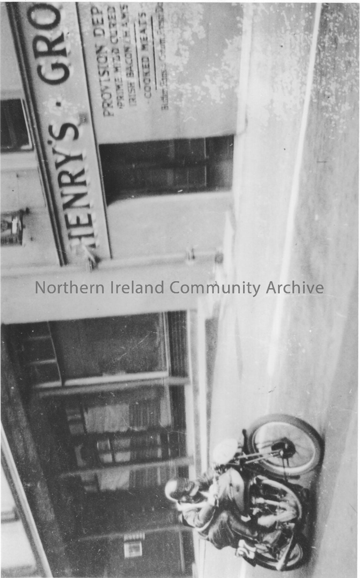 Black and white Motorcycle racer at Henry's Grocers