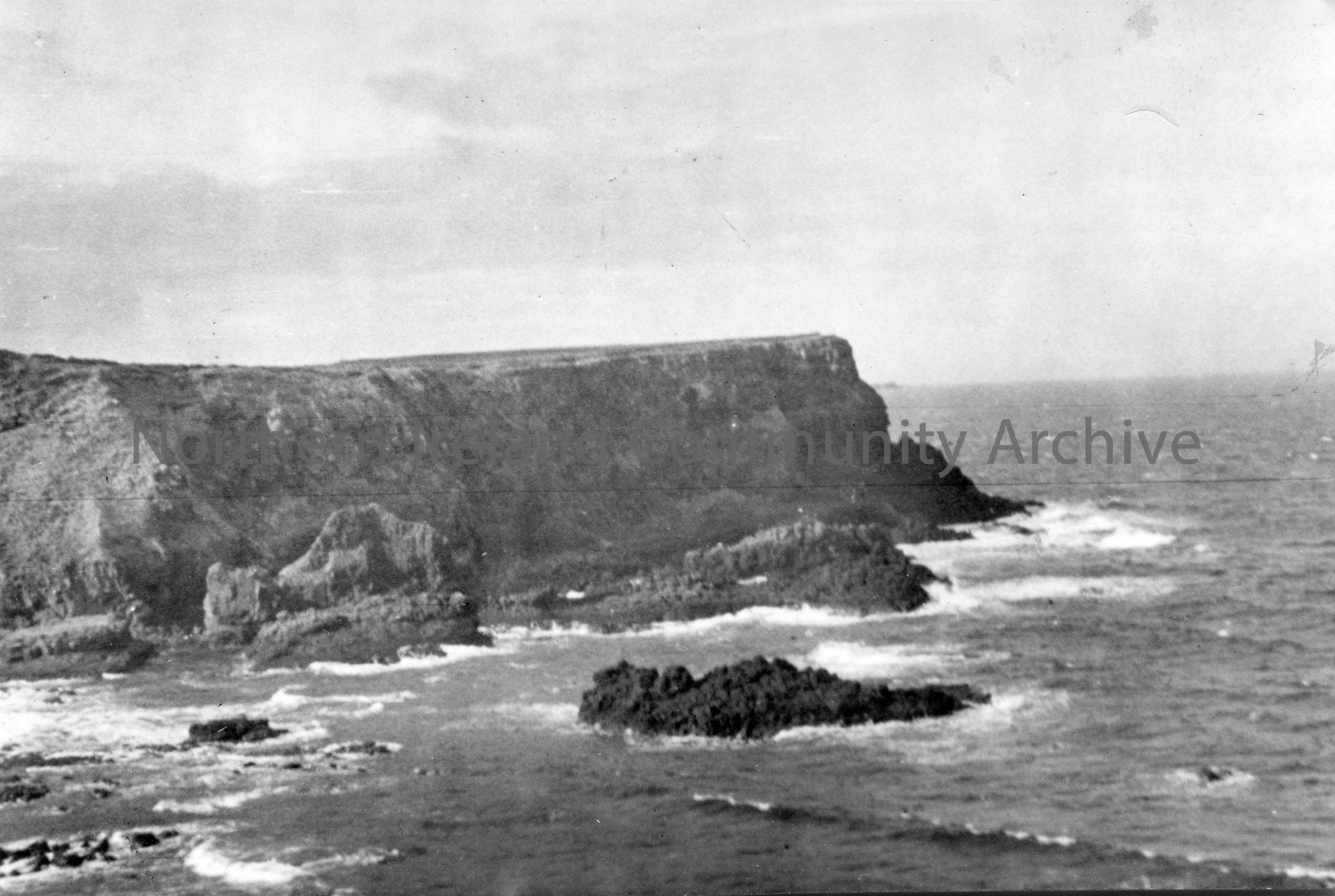 Black and white photograph. Image of the Giant’s Causeway. Used in Sam Henry’s ‘Dunluce and Giant’s Causeway’ book – CM:2011:518 on page 62. Captioned…