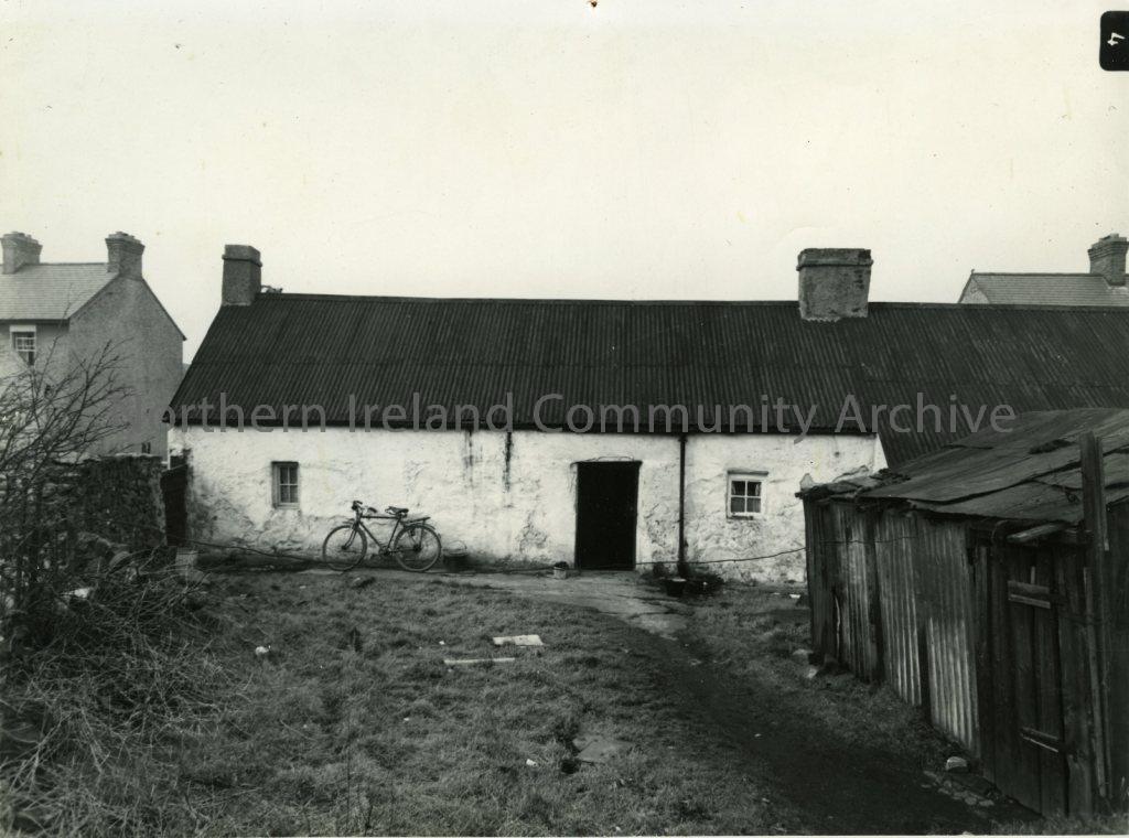 Black and white photograph of 76/77 Long Commons (from rear), Coleraine, 1957
