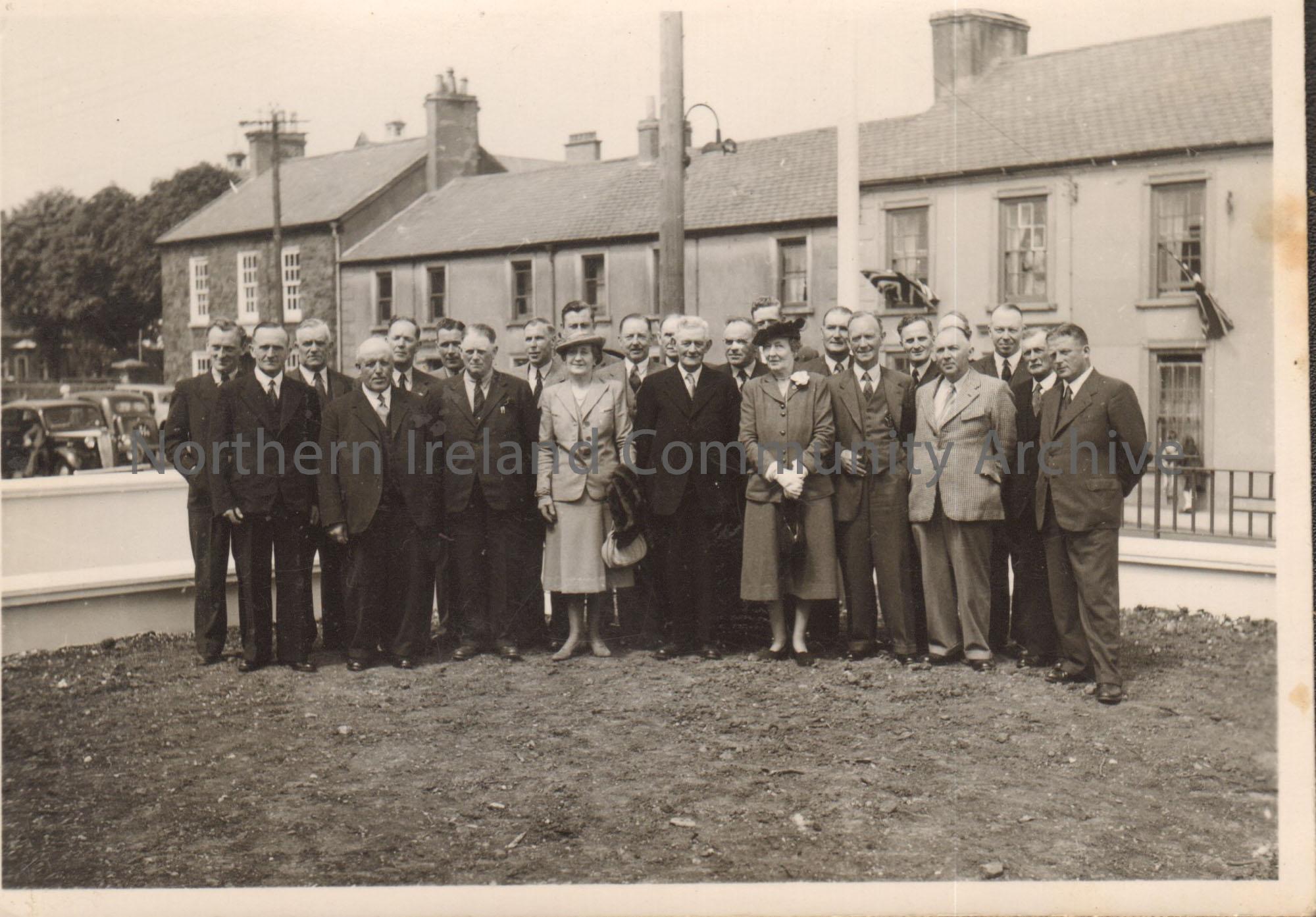Black and white photograph of a group standing ...