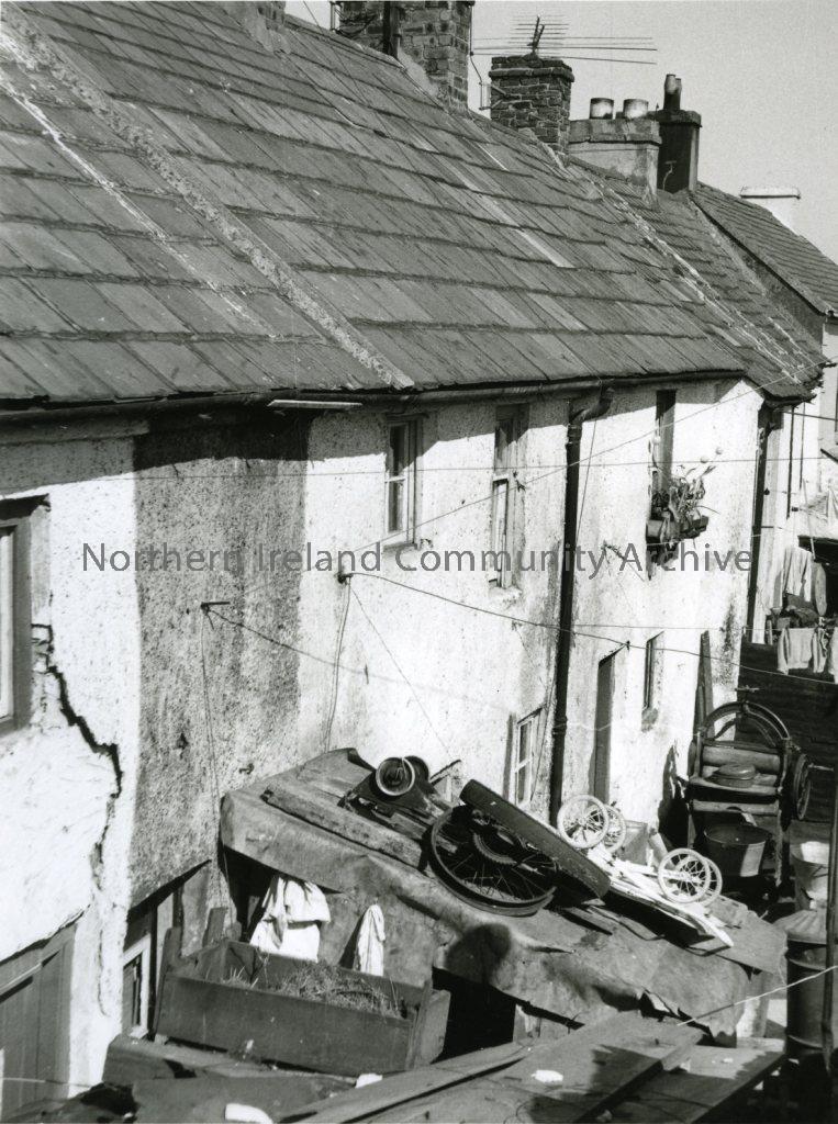 Black and white photograph of No2 to 12 Kyles Brae (rear d/vgs), Coleraine, 1957