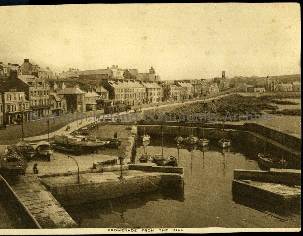 Black and white photograph of Portstewart Promenade from the Hill