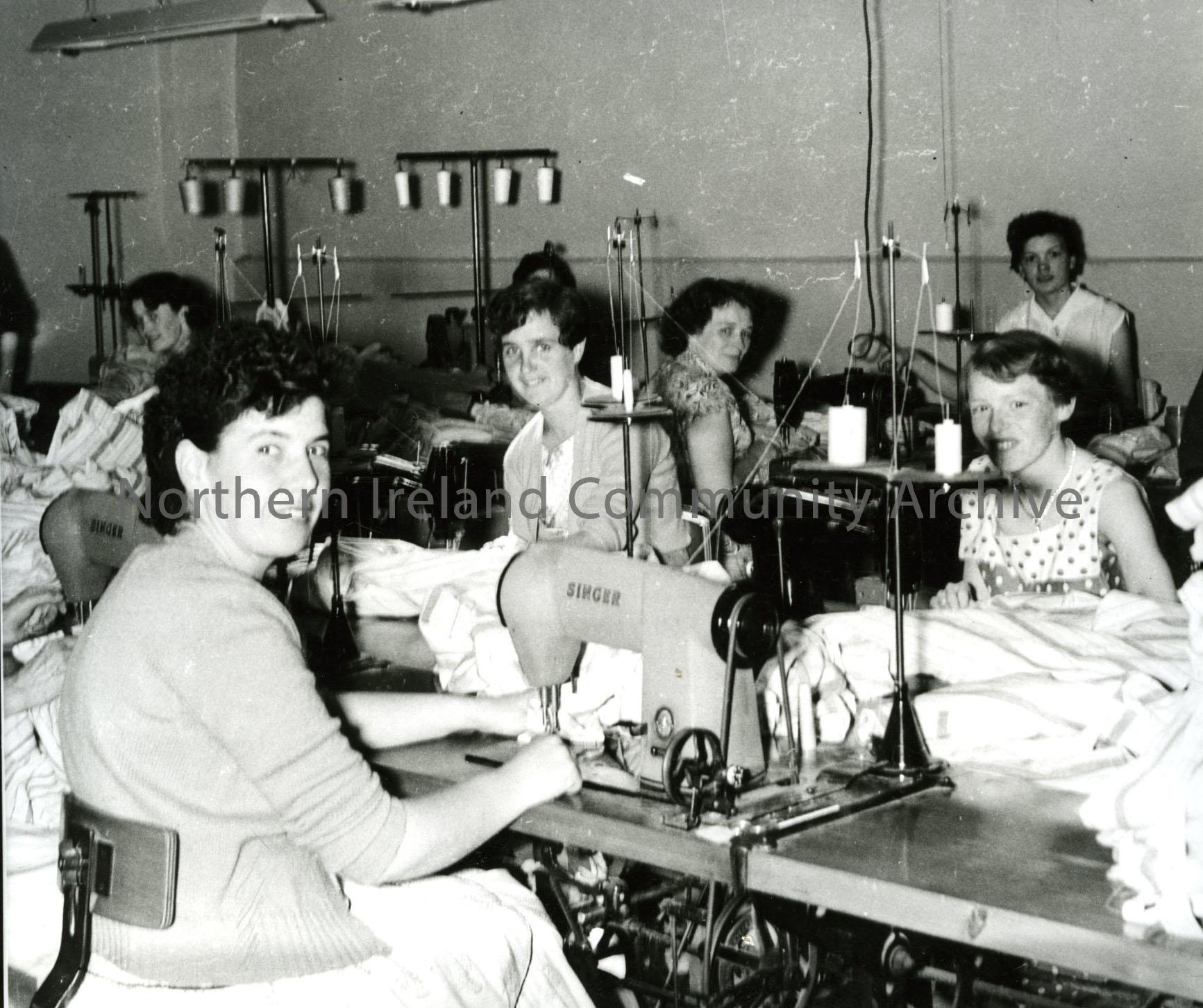 Black and white photograph of women working at the McDermott shirt making factory, Coleraine. Copyright of the photograph remains with the Coleraine C…