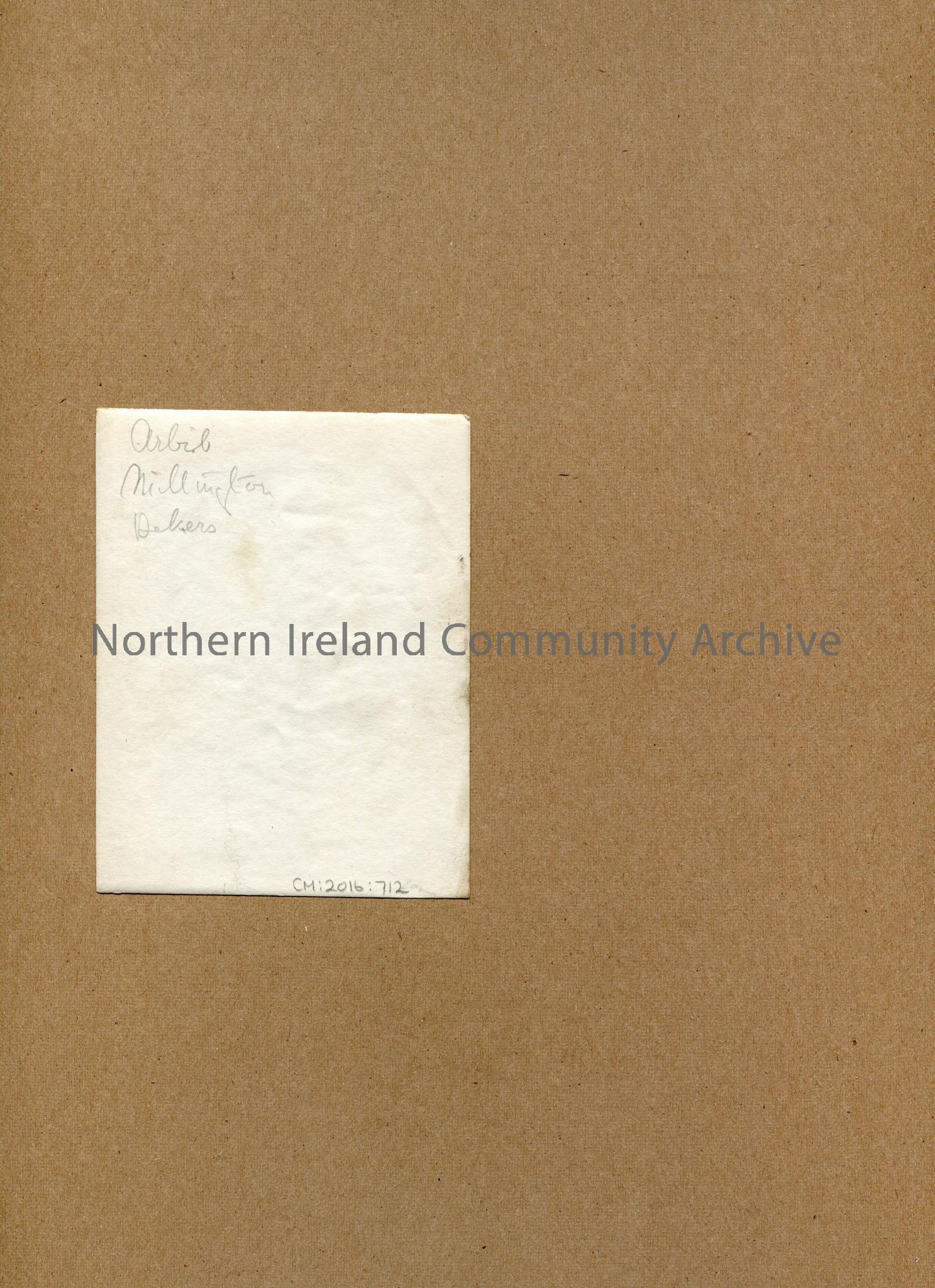 Black and white photograph or copy of three young men. Arbil, Hillington, Dekens handwritten on reverse. – img098b