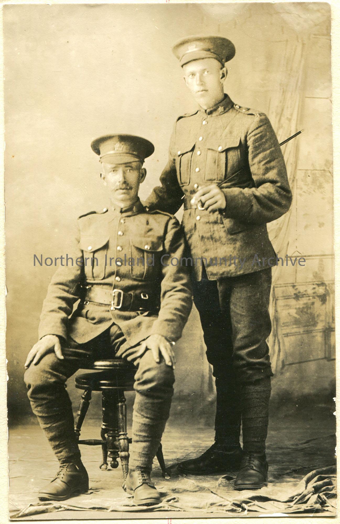 Black and white portrait photograph of two men in military uniform.