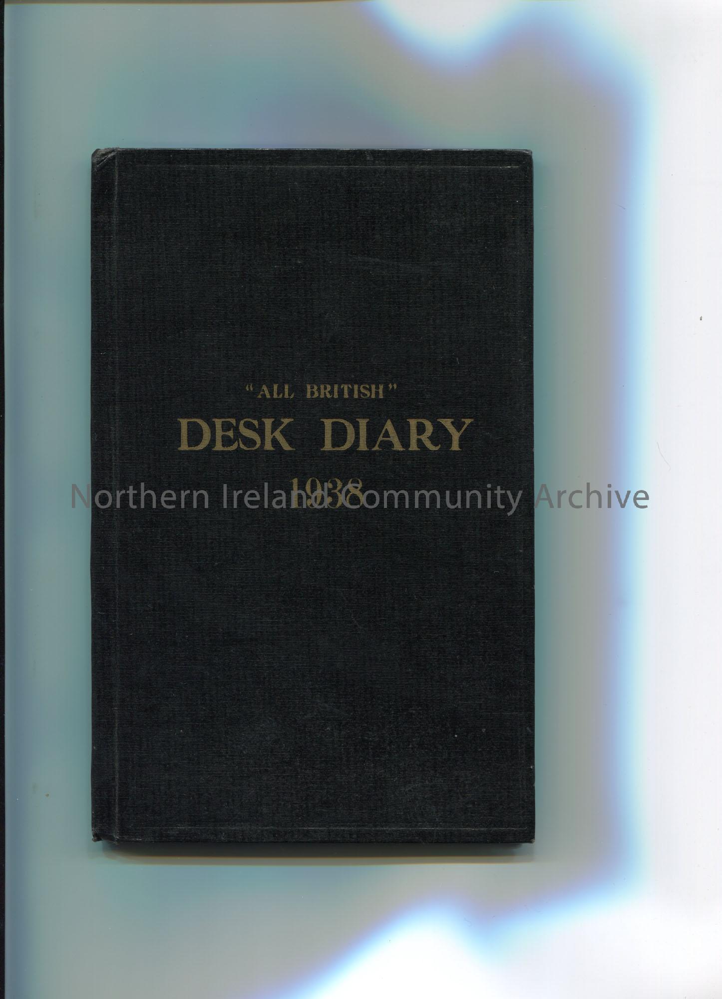 Black coloured 'All British' Desk Diary, 1938. Belonging to Sam Henry. Consistently filled in to middle of January. Sporadic entries until 22nd March. Notes a broadcast re Shane Crossagh on Saturday 26th February at 7pm.
