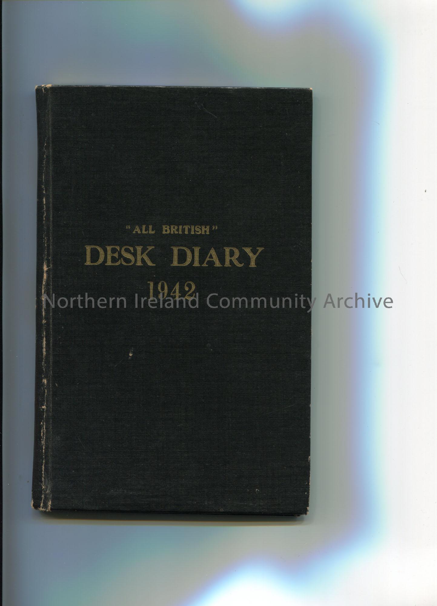 Black coloured ‘All British’ Desk Diary, 1942. Belonging to Sam Henry, Sandelford, Coleraine. Consistently filled in.