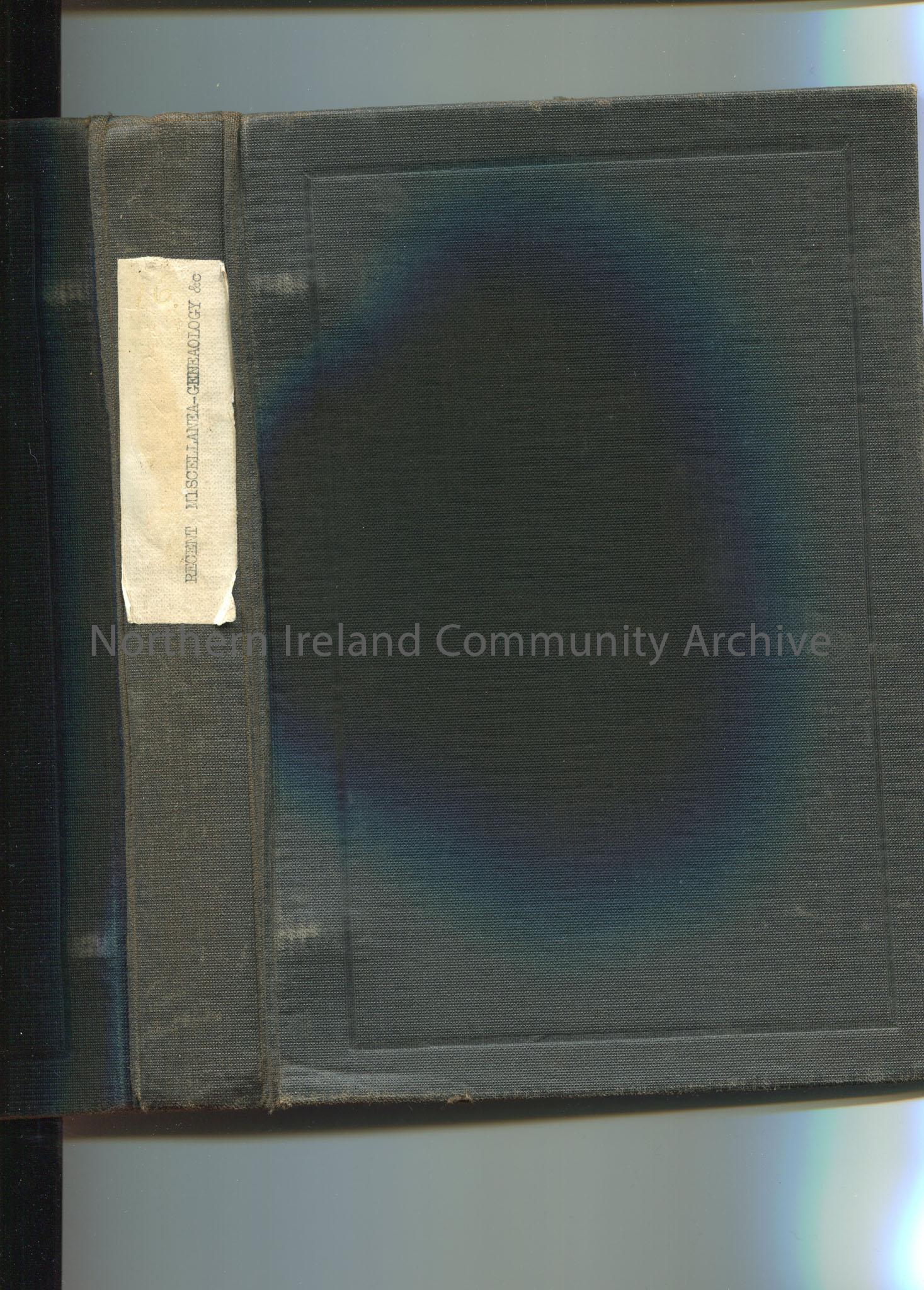 Black ring binder folder labelled ‘Recent Miscellanea – Genealogy’. Metal hardware on inside. – scan012b