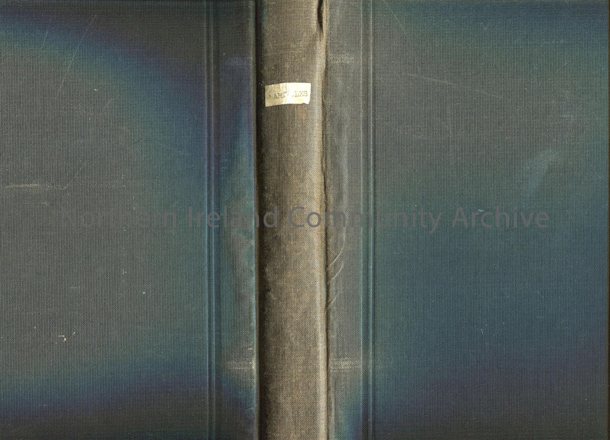 Black, ring binder folder, ‘Simplex Note Book’, labelled ‘Articles’ on spine of folder. Inside is written ‘S.Henry, Sandelford, Coleraine’ and a calen… – scan358b