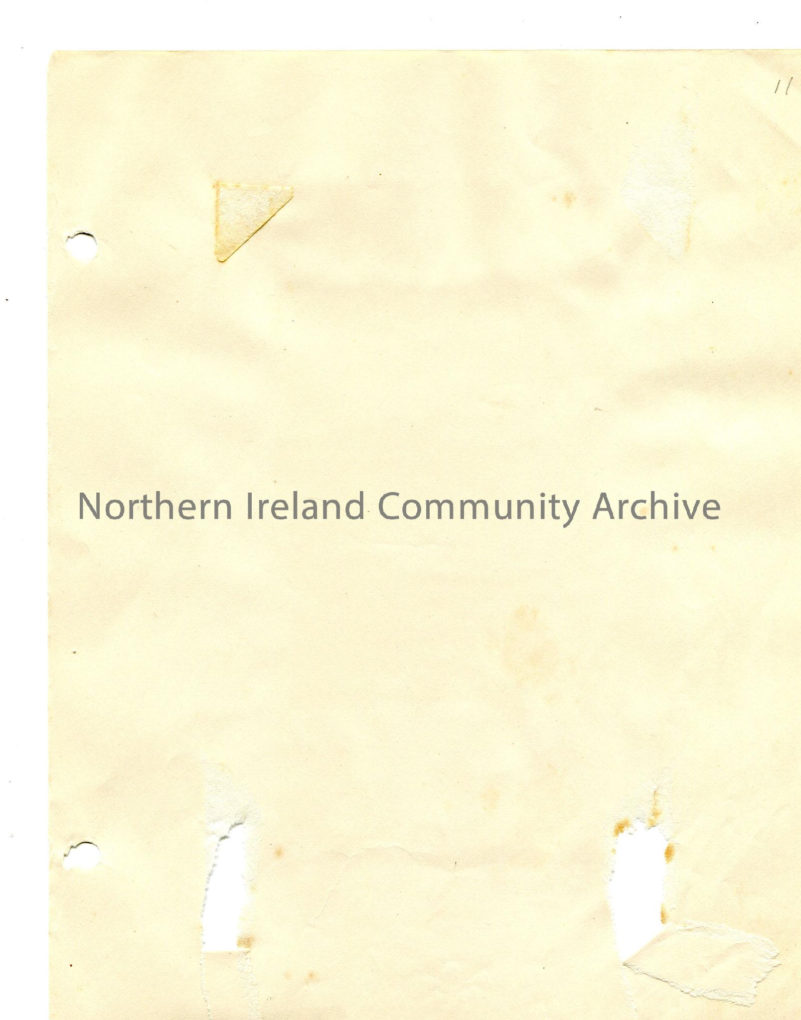 Blank page. Page from loose manuscript of Rowlock Rhymes and Songs of Exile- a book of verse edited by Sam Henry. The author, Robert McMullan from Portballintrae, had the pen name 'North Antrim' and was "imbued with the Celtic spirit" and interested in the fishermen of the north coast of Antrim