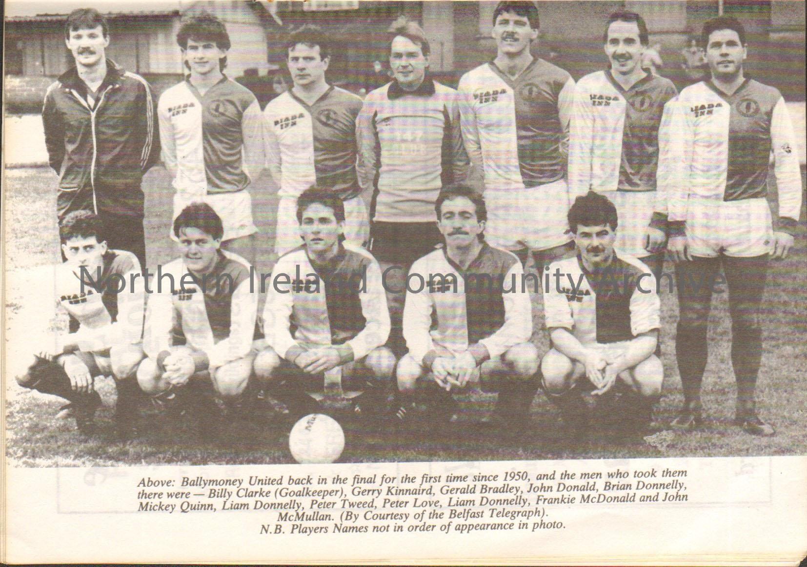 Blue and white football programme - Steel and Sons Cup Final Ballymoney United v Brantwood
