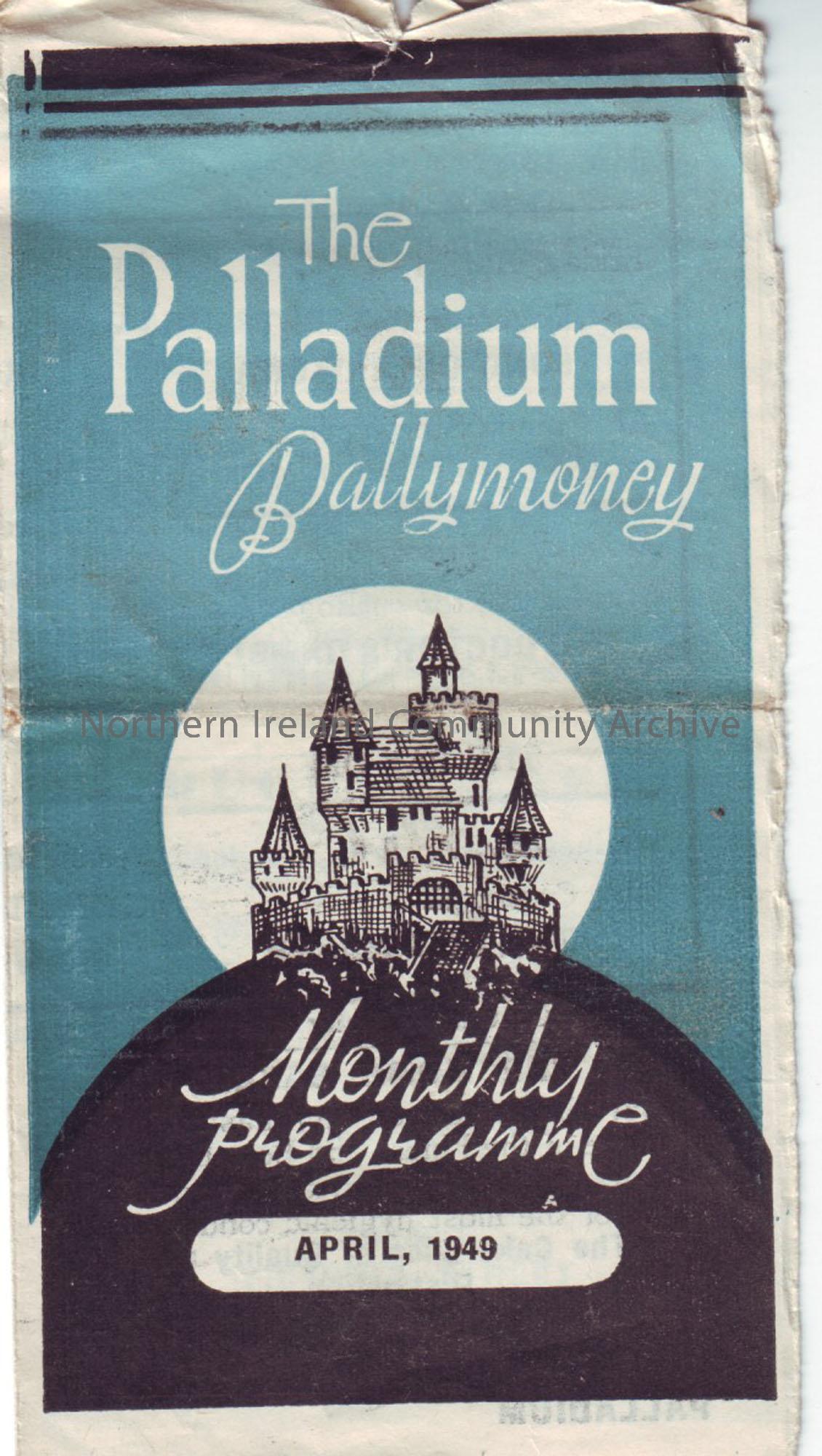 blue monthly programme for Ballymoney Palladium cinema- April 1949