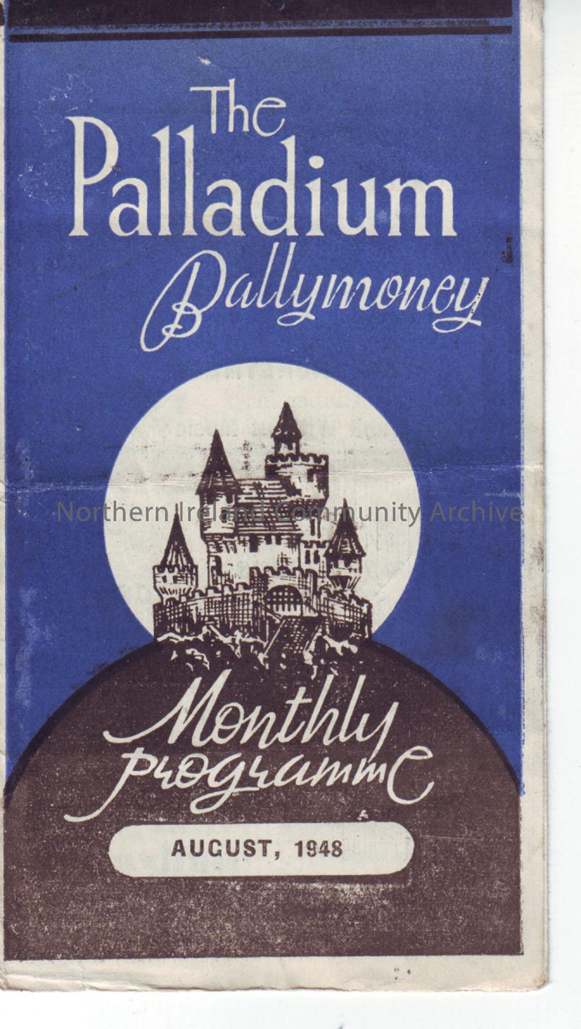 blue monthly programme for Ballymoney Palladium cinema- August 1948