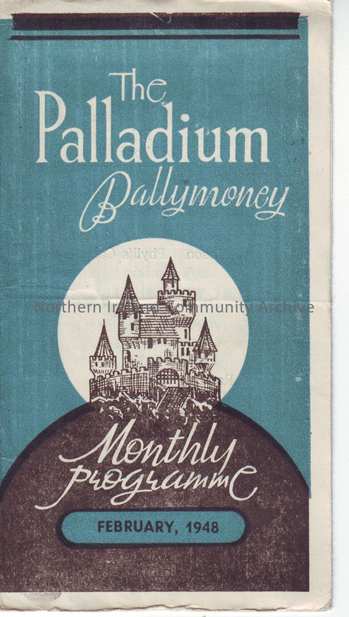 blue monthly programme for Ballymoney Palladium cinema- February 1948