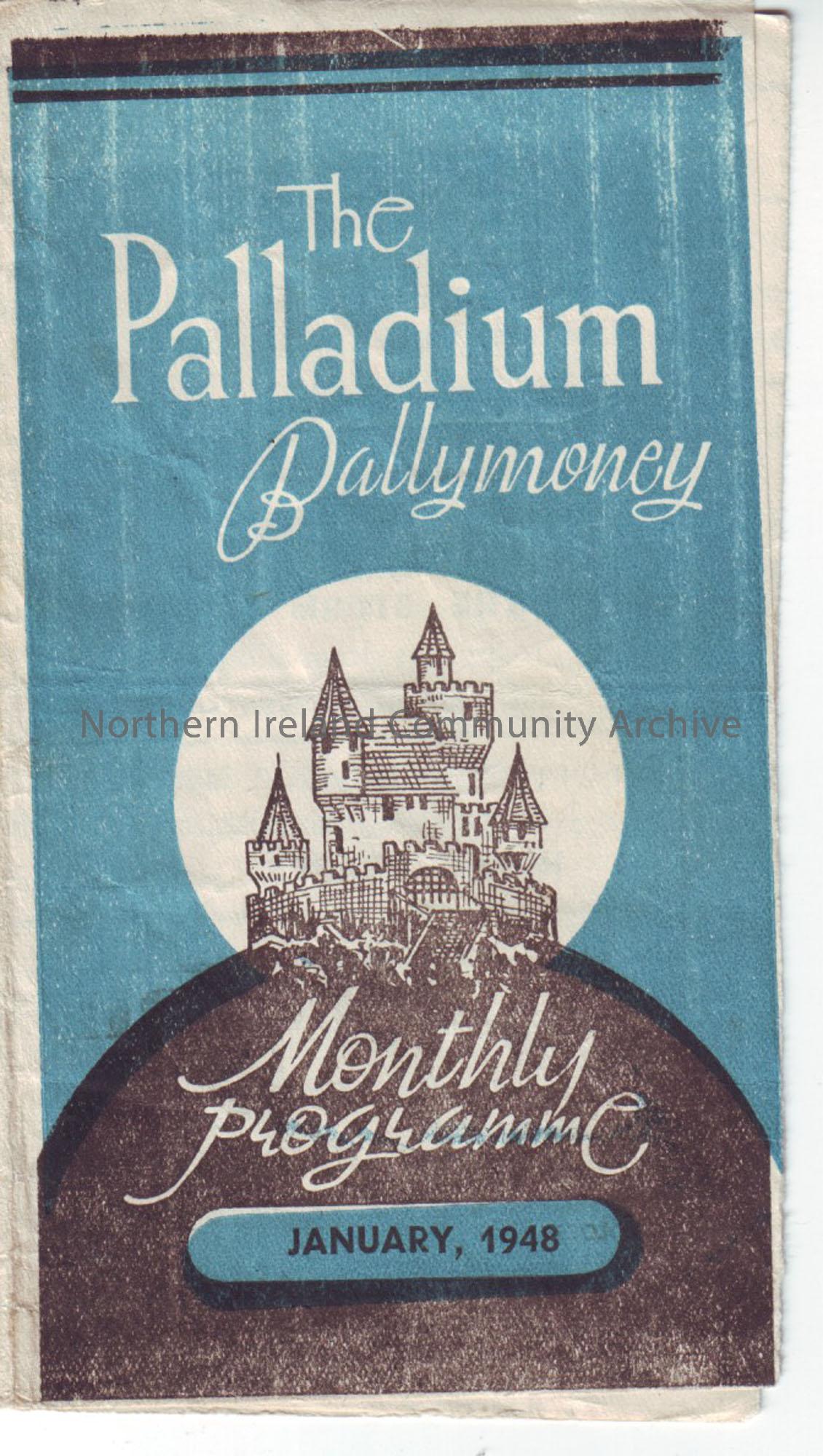 blue monthly programme for Ballymoney Palladium cinema- January 1948