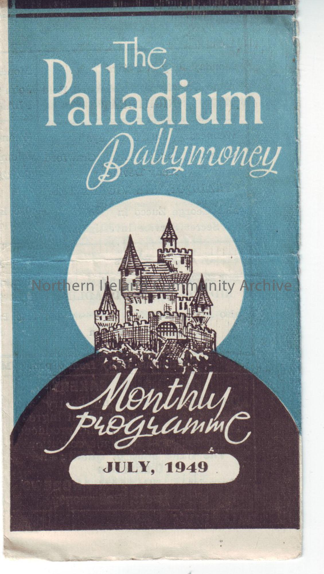 blue monthly programme for Ballymoney Palladium cinema- July 1949