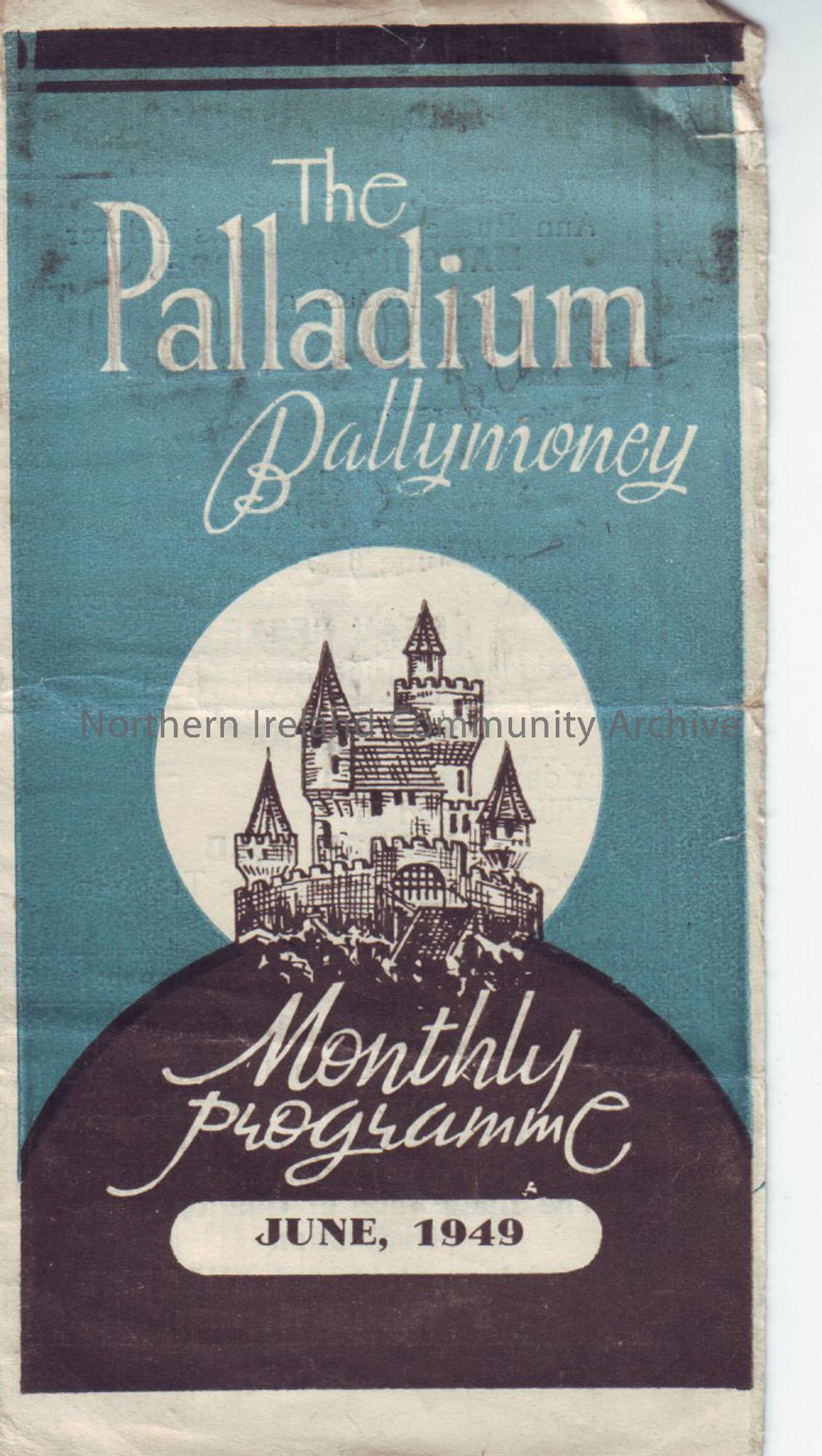 blue monthly programme for Ballymoney Palladium cinema- June 1949