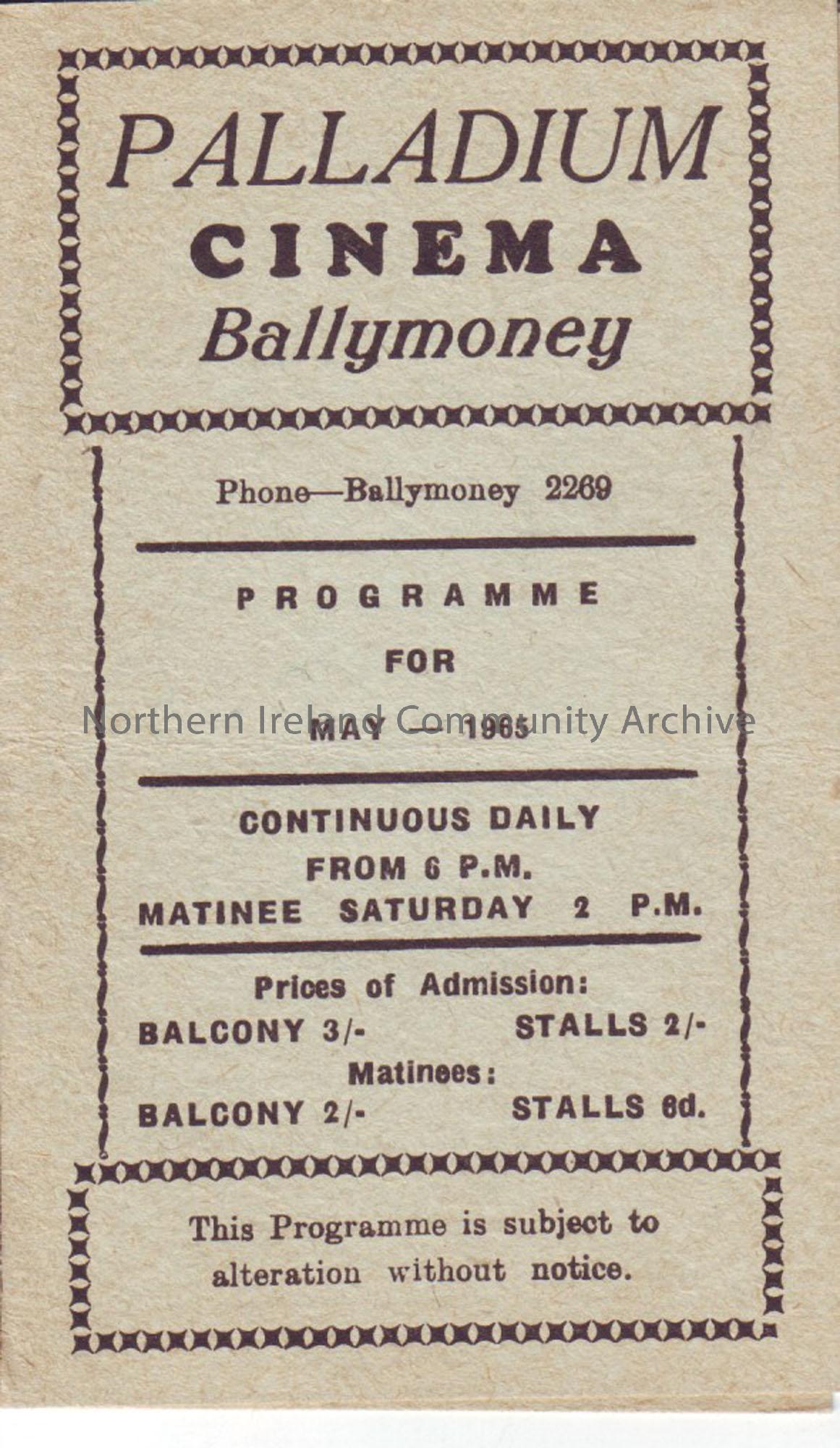 cream programme for Ballymoney Palladium cinema...