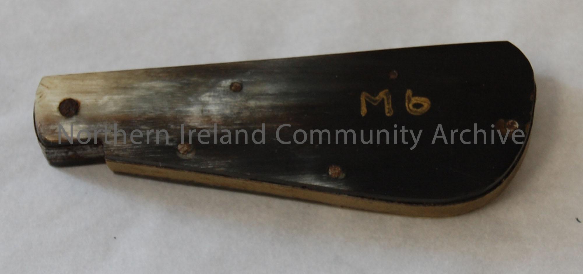 Bone handled penknife with inserted blades with triangular perpendicular points, known as a fleam. Used by farmers to bleed cattle which was thought to be a cure for some diseases.