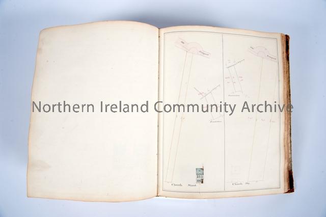 Folio of architectural drawings and watercolours from 1816-1818 of Coleraine town centre. Illustrations contain 17th century buildings that continue to exist and are the best representation of the town during Plantation. Donated to Coleraine Museum by D. MacLaughlin.