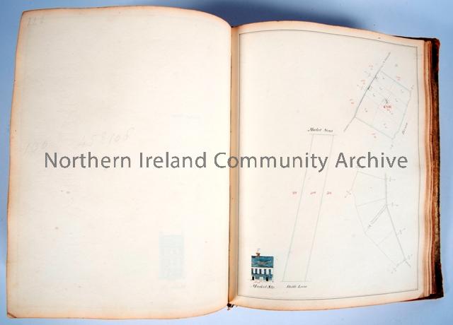Folio of architectural drawings and watercolours from 1816-1818 of Coleraine town centre. Illustrations contain 17th century buildings that continue to exist and are the best representation of the town during Plantation. Donated to Coleraine Museum by D. MacLaughlin.