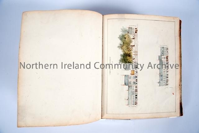 Folio of architectural drawings and watercolours from 1816-1818 of Coleraine town centre. Illustrations contain 17th century buildings that continue to exist and are the best representation of the town during Plantation. Donated to Coleraine Museum by D. MacLaughlin.