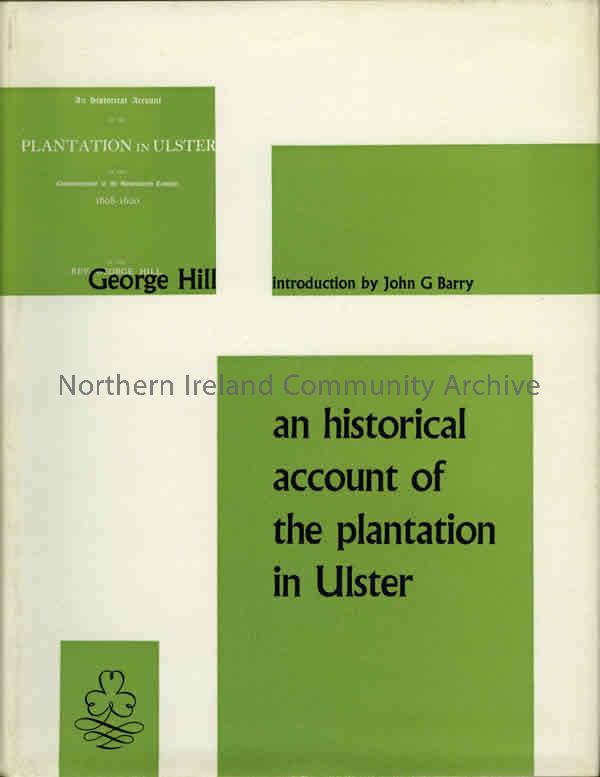 book titled, An Historical Account Of The Plantation In Ulster, by George Hill. With an introduction by John G Barry