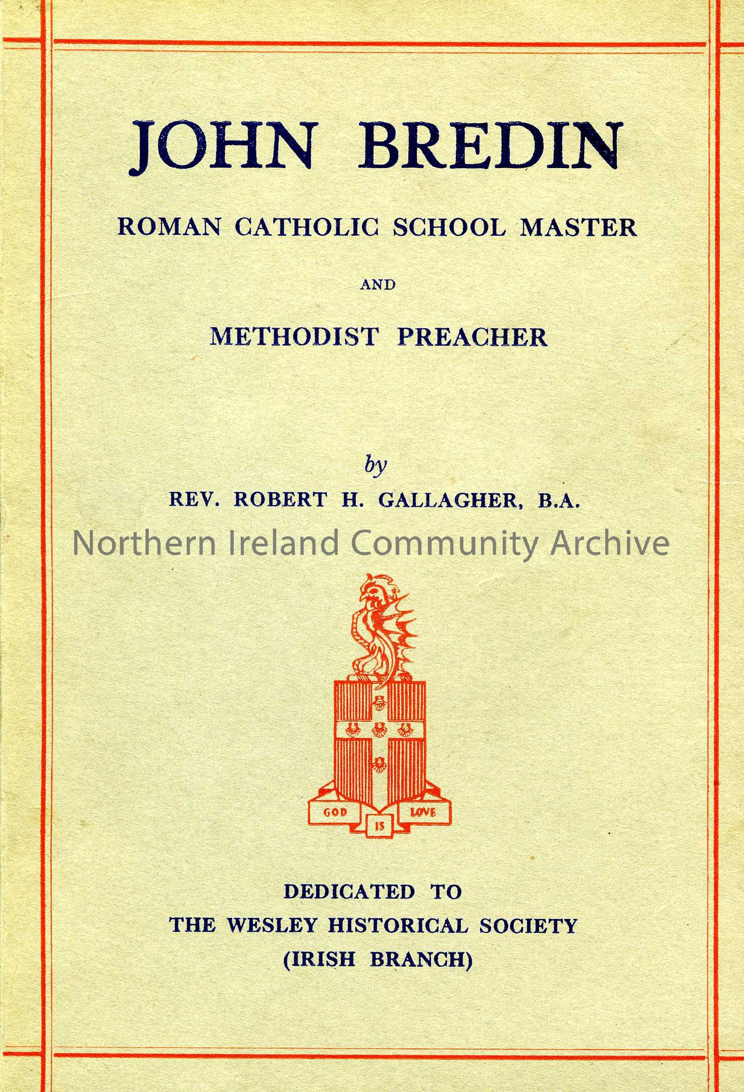 book titled, John Bredin, Roman Catholic School Master And Methodist Preacher. By REV.Robert H. Gallagher