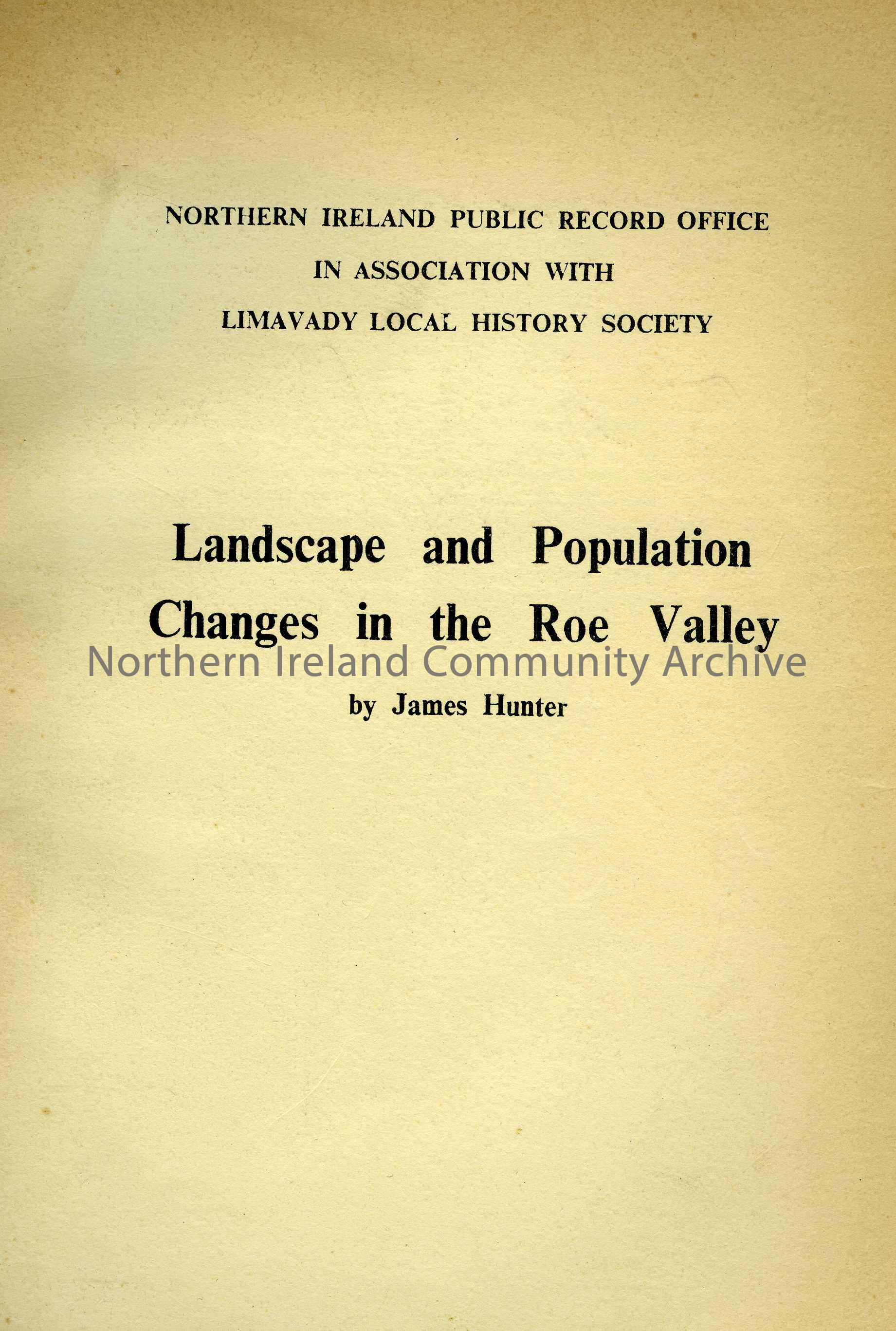 book titled, Landscape and Population in the Roe Valley. By James Hunter.
