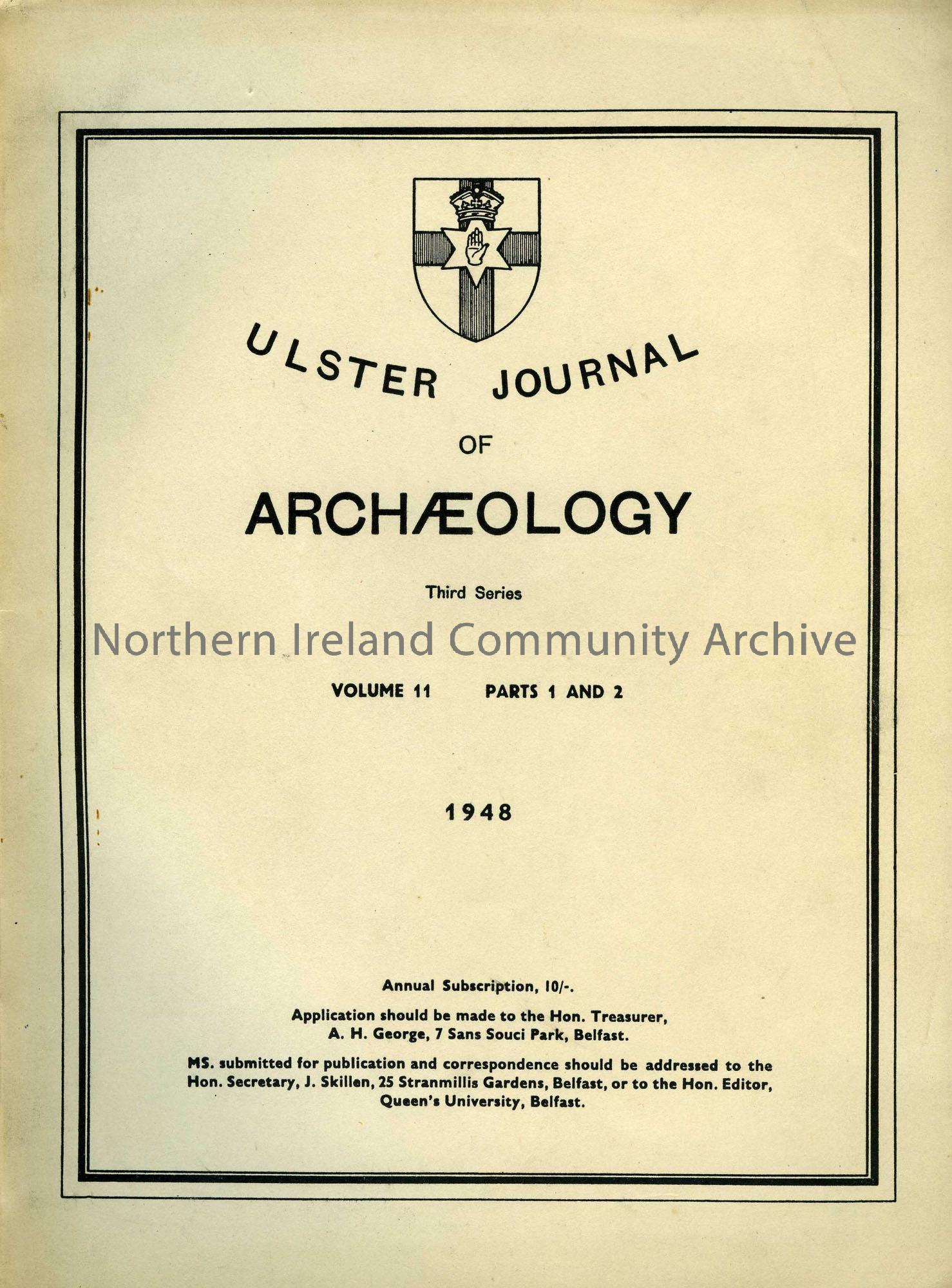 book titled, Ulster Journal of Archaeology. Third Series. Volume 11, parts 1 and 2. 1948
