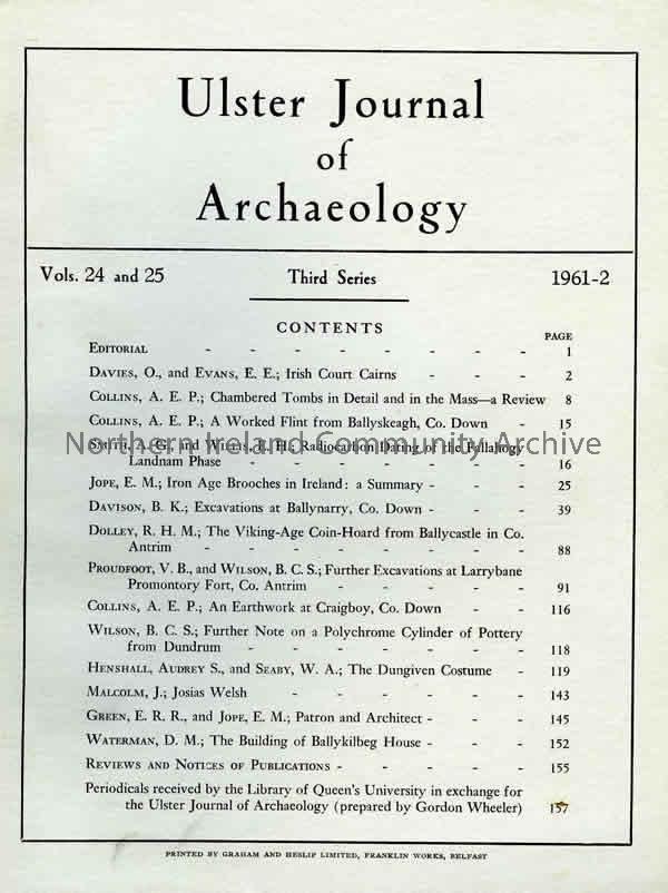 book titled, Ulster Journal of Archaeology. Third Series Volume 24 ad 25, 1961-2