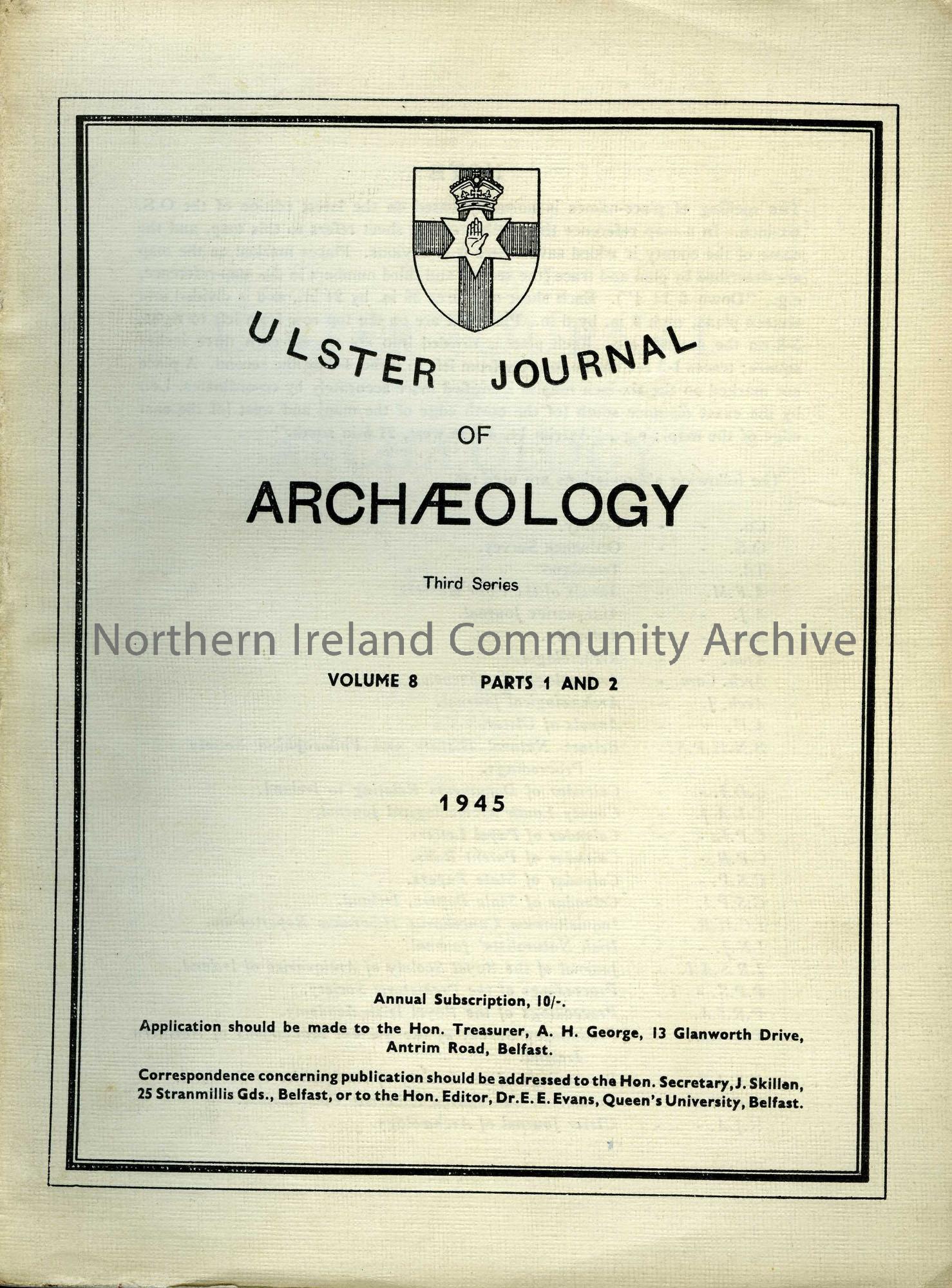 book titled, Ulster Journal of Archaeology. Third Series. Volume 8, parts 1 and 2. 1945
