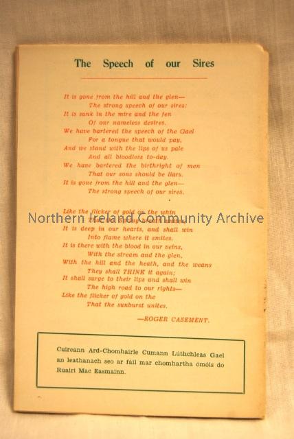 Casement Slanders Refuted. Republican booklet chronicling Roger Casement and the struggle to have his remains returned to Ireland. Priced 2/- Back of booklet Courtesy of Ballycastle Museum