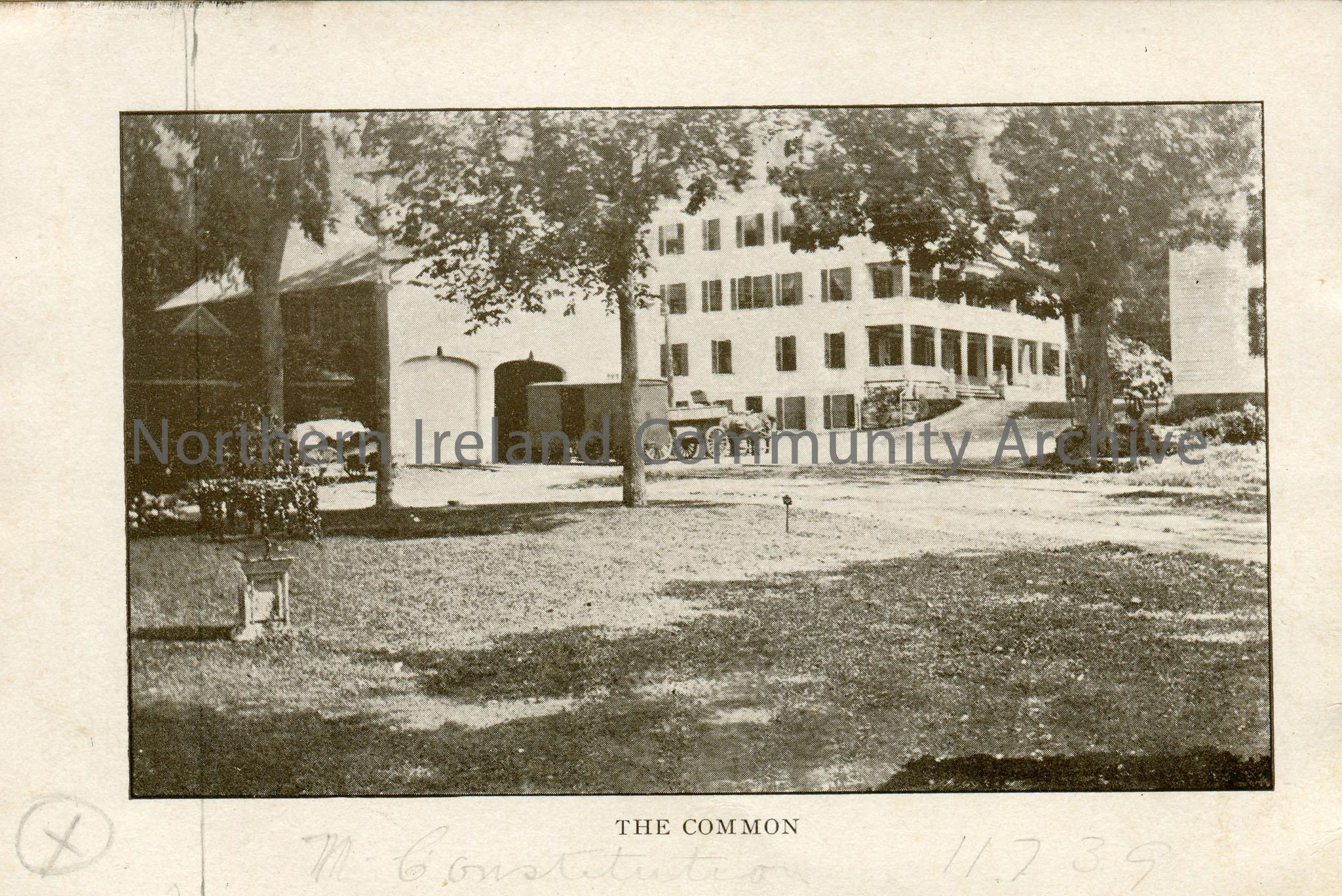 booklet of 9 black and white images captioned, 'Colerain Hotel', 'Colerain From Brown's Hill', 'Main Street', 'River Street, Looking South', 'River Street, Looking North', 'The Common', 'Congregational Pulpit, 110 Years Old', 'Harp Elm' and 'Cabin In The Woods'. 'The Common' has 'N.Constitution 11.7.39' handwritten in pencil below image.