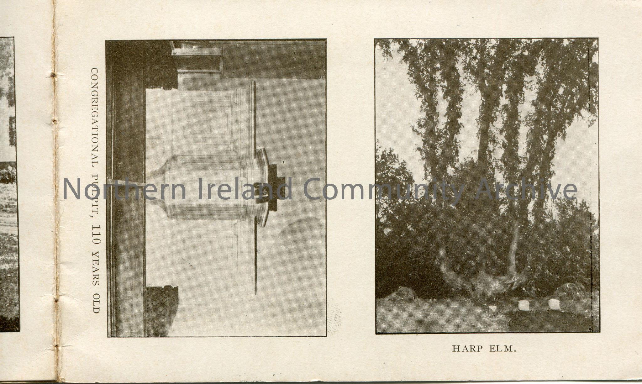 booklet of 9 black and white images captioned, 'Colerain Hotel', 'Colerain From Brown's Hill', 'Main Street', 'River Street, Looking South', 'River Street, Looking North', 'The Common', 'Congregational Pulpit, 110 Years Old', 'Harp Elm' and 'Cabin In The Woods'. 'The Common' has 'N.Constitution 11.7.39' handwritten in pencil below image.