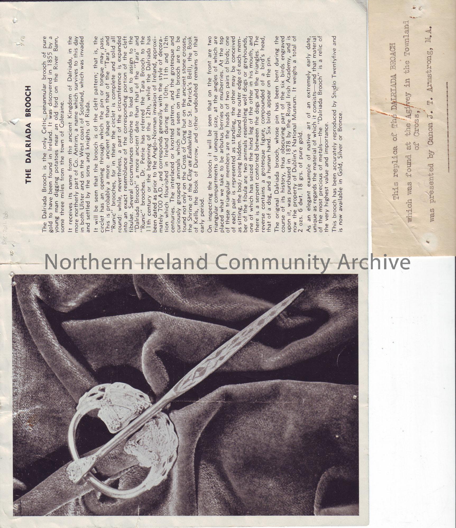 booklet showing photograph of the Dalriada brooch along with information