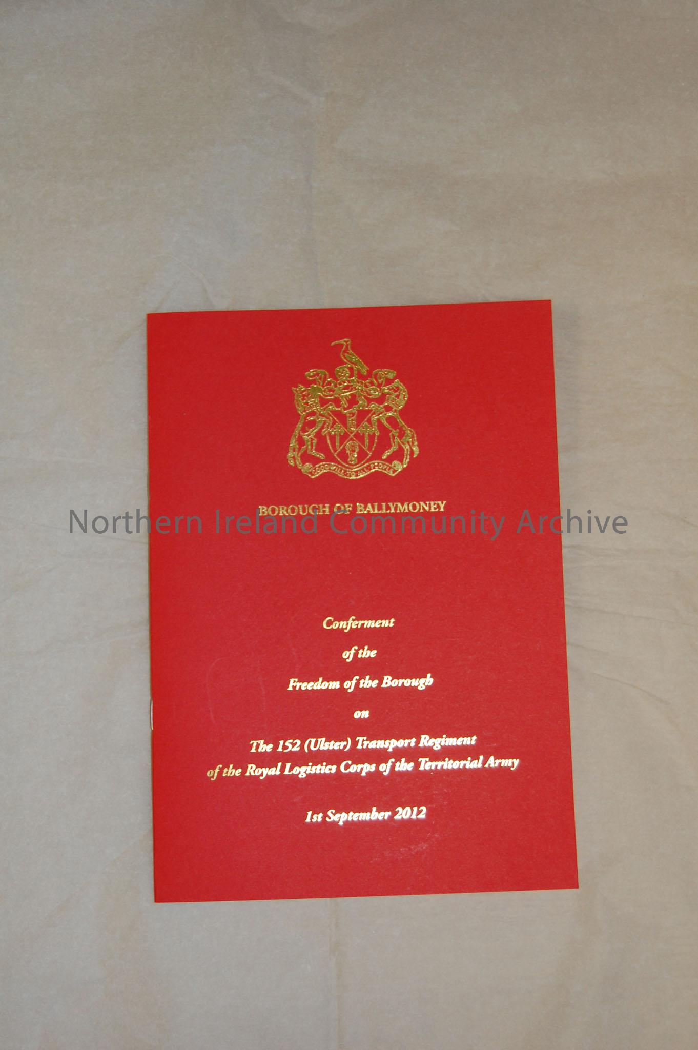 Borough of Ballymoney conferment of the Freedom of the Borough on The 152 (Ulster) Transport Regiment of the Royal Logistics Corps of the Territorial Army. 1st September 2012