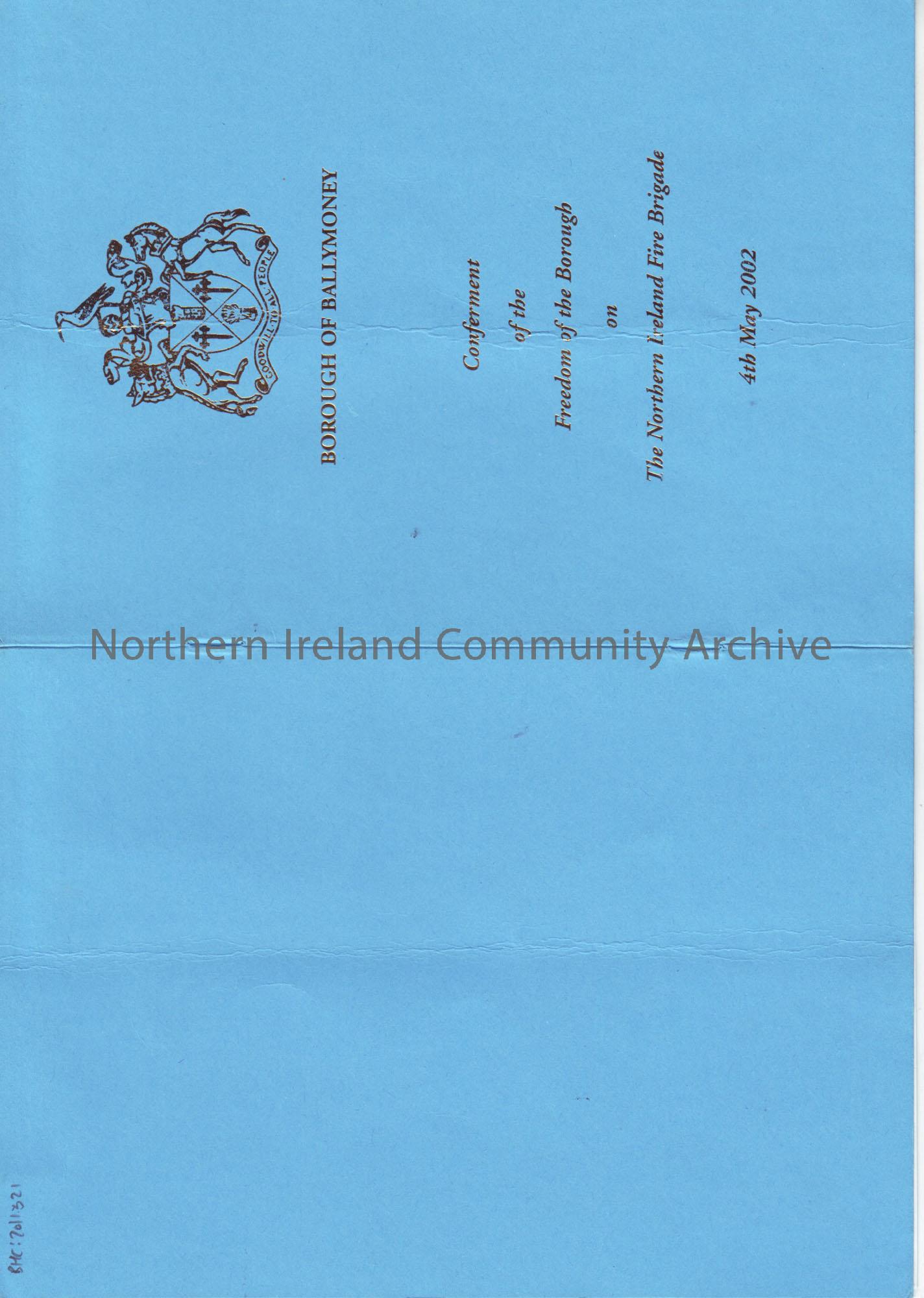 Borough of Ballymoney conferment of the Freedom of the Borough on The Northern Ireland Fire Brigade 4th May 2002