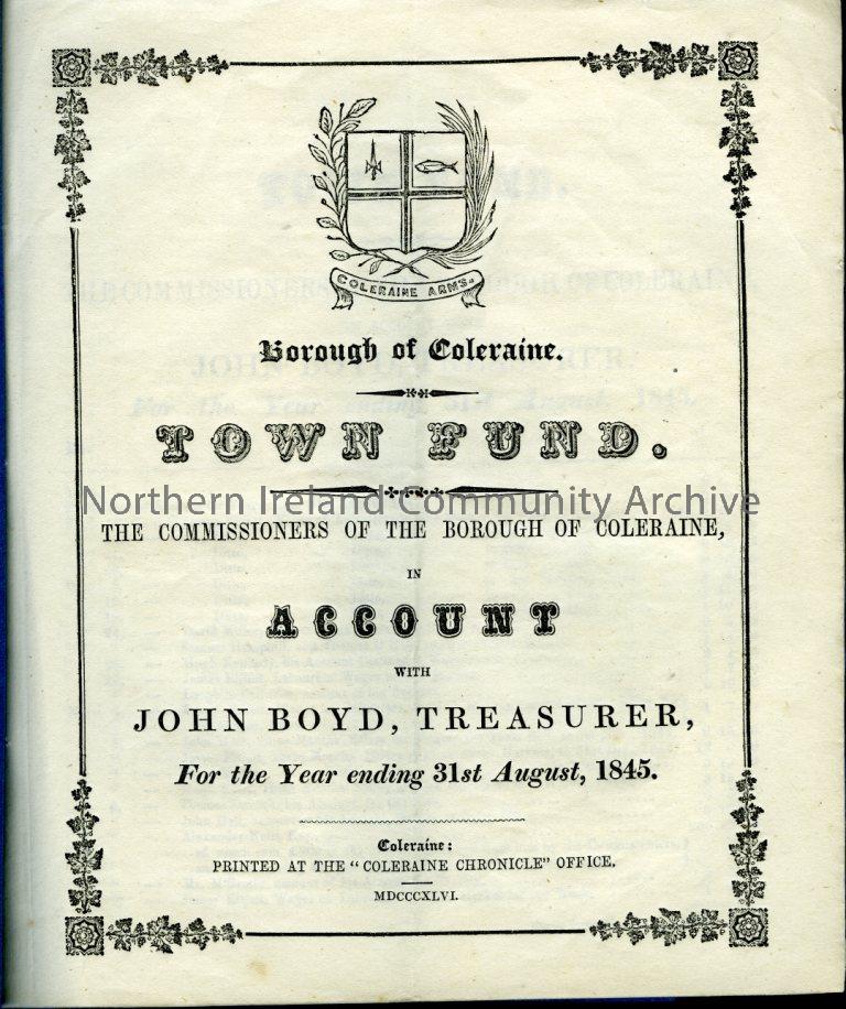 Borough of Coleraine Town Fund for the year ending 31st August 1845 (3156)