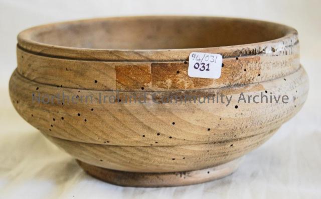 Turned wooden bowl in sycamore, possibly for holding fruit. Courtesy of Ballycastle Museum.