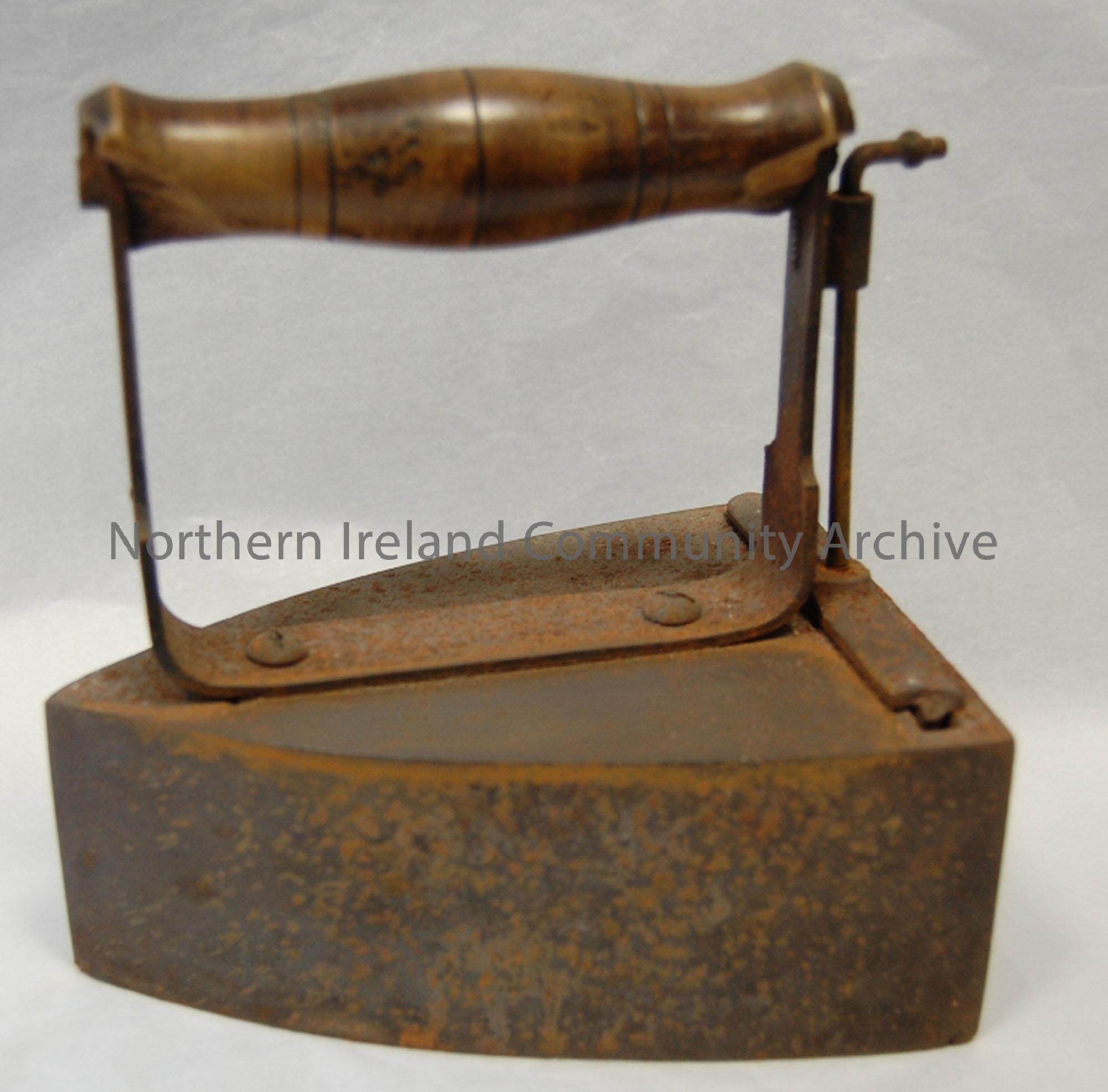 Box iron which used metal slugs heated in stove and put inside the iron. See BHC:1998.14,15 for slugs. Owned by Mrs Rebecca Coleman, Bendooragh Rd