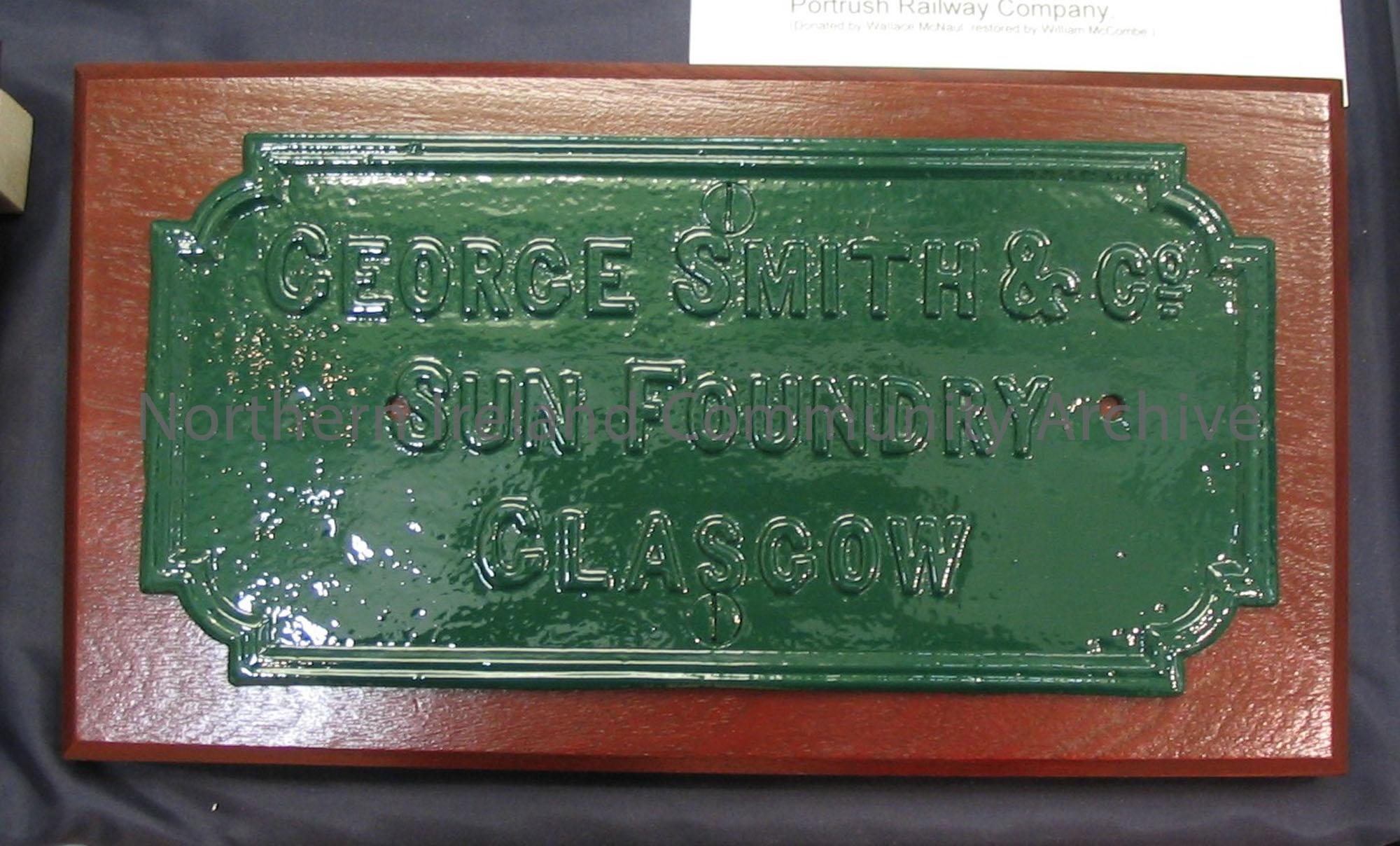 Bridge Makers name plate, 'George Smith & Co Sun Foundry Glasgow'