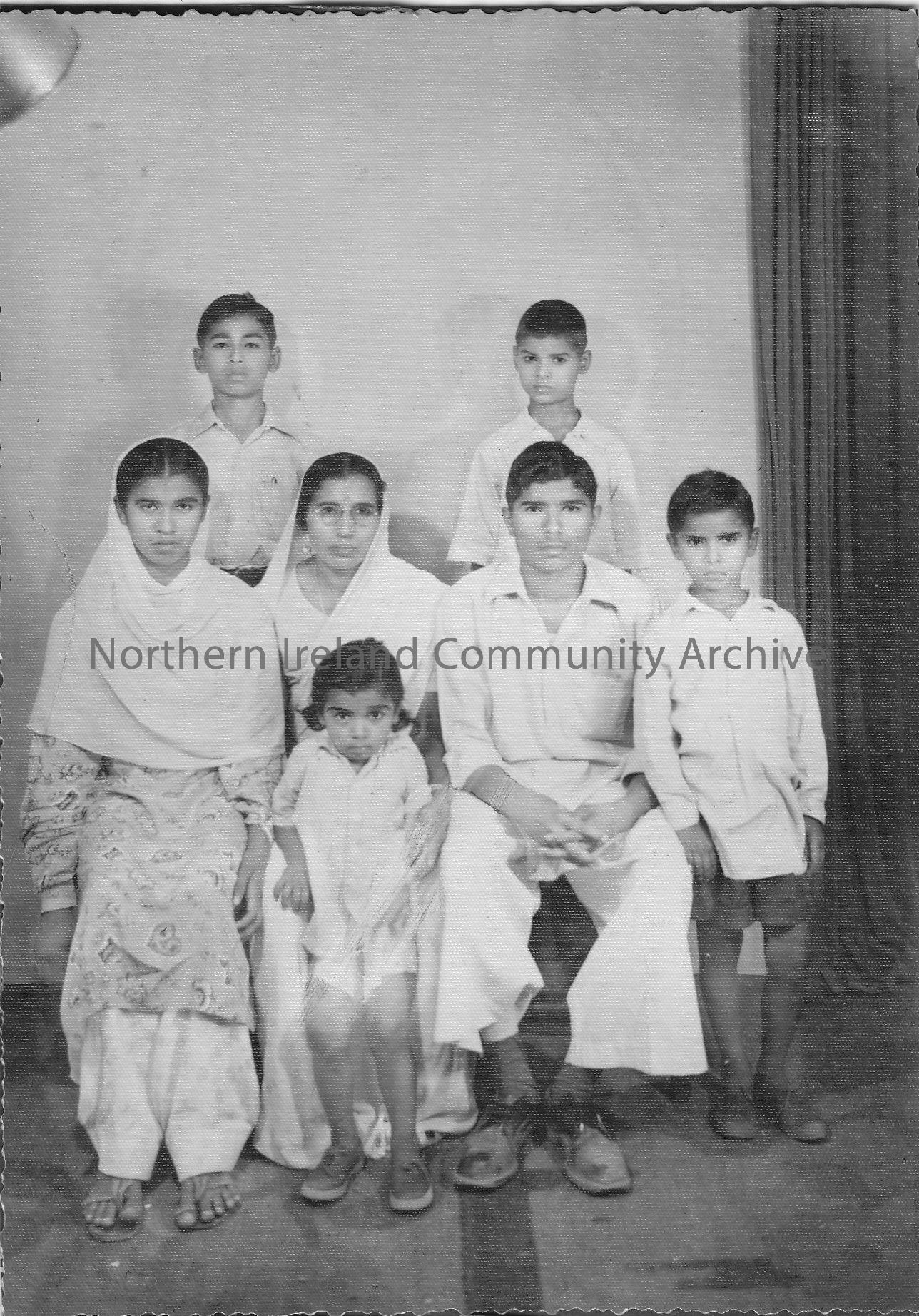 Top [left to right]: Baldev, age 14; Bal, age 10 Middle row: Janak Chada, age 15; Indira Chada, age 38; Brij Chada, age 17; Sham Chada, age 6 Lower row: Shiv Chada, age 3 Hadiabad 1956