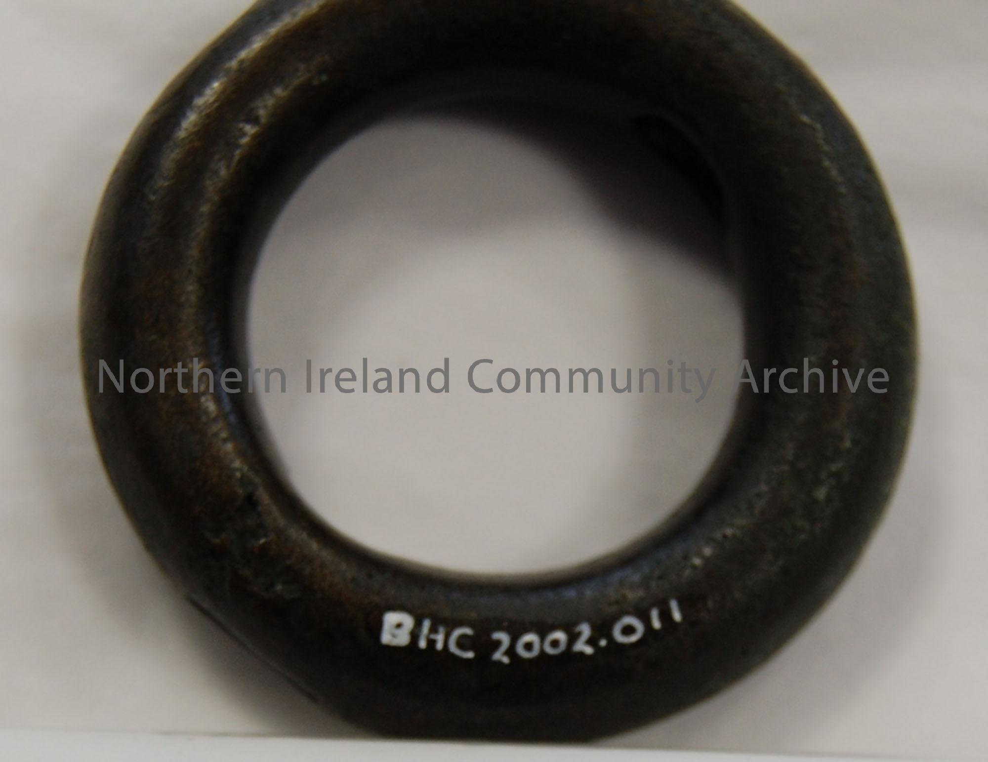 Bronze Age ring, hollow, two opposite holes.