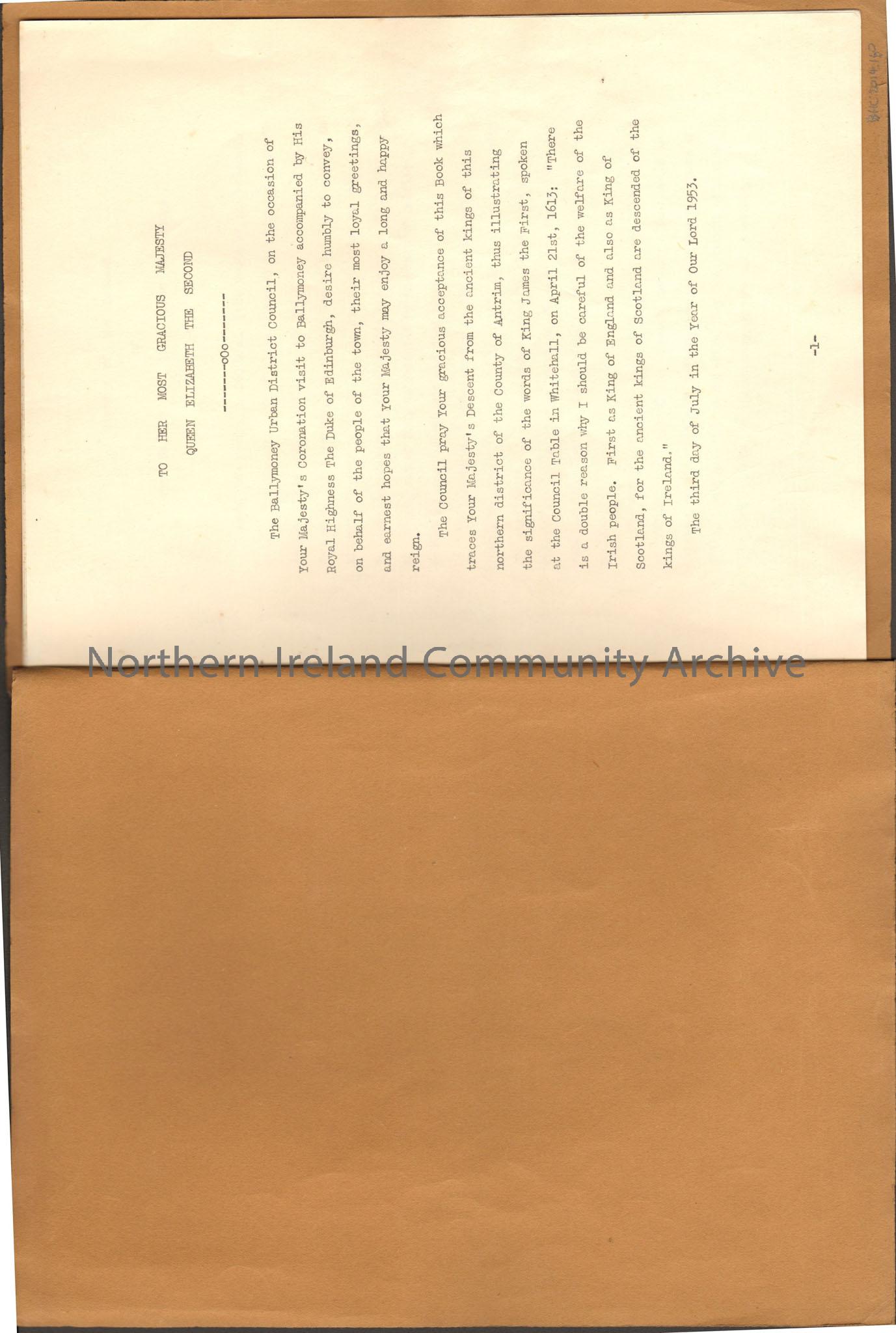 Brown bound book. History of the Descent of Her Majesty the Queen from the Kings of Dalriada, James McAfee copy 1953 – 2014.160