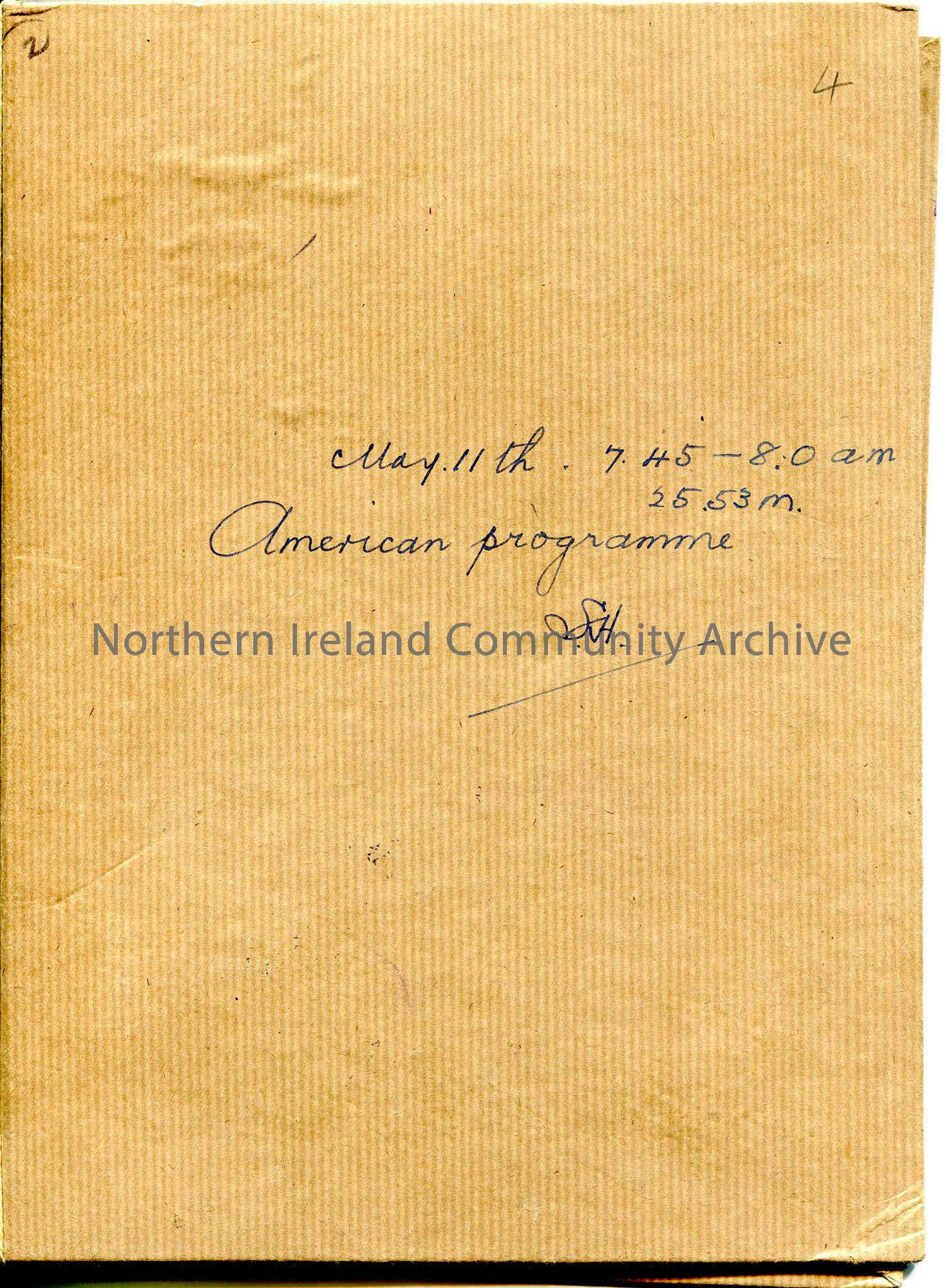 Brown folder labelled ‘American Programme May 11th 7.45-8am 25.53M”