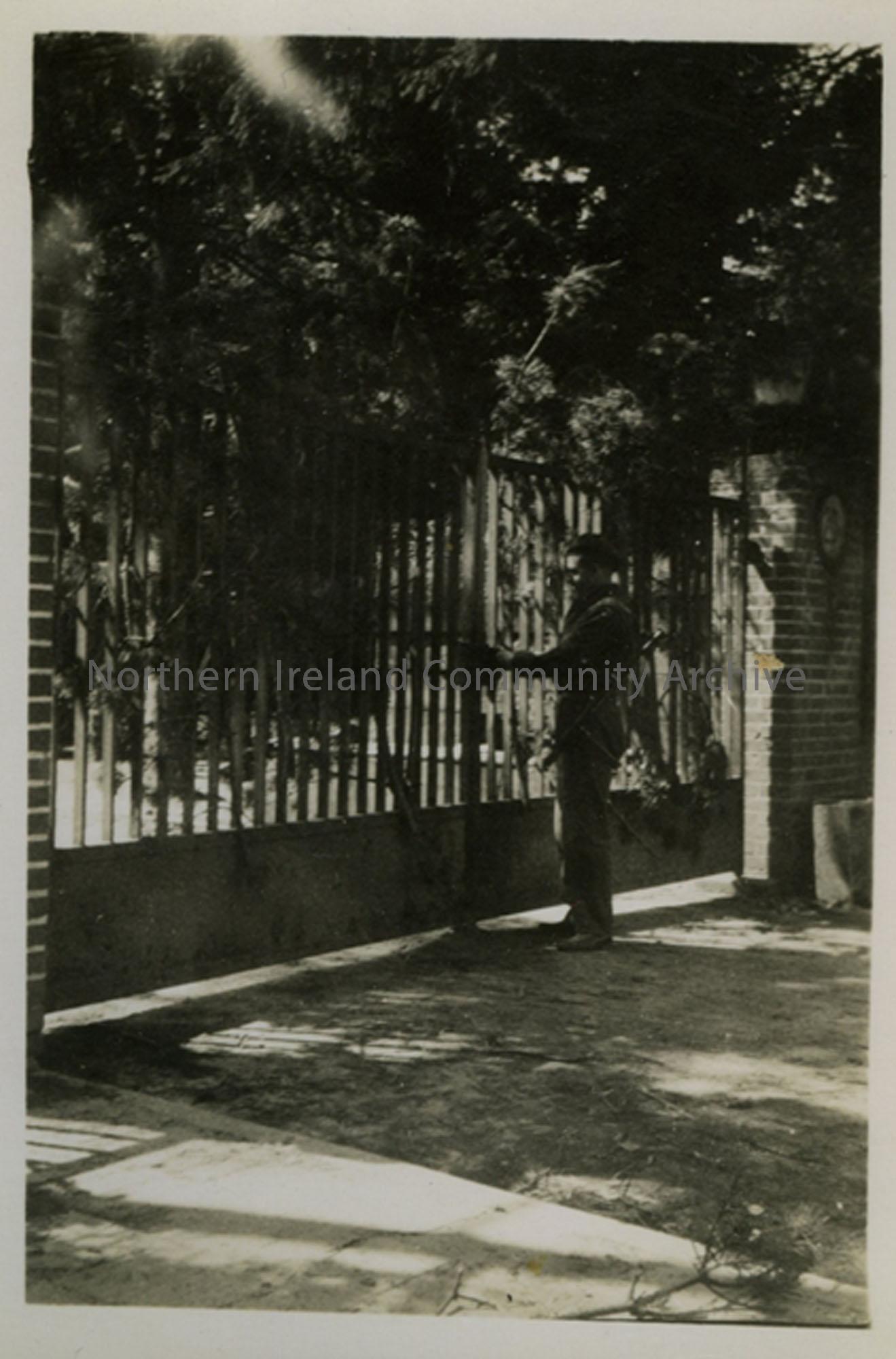 Soldier at gates at Buxtehude Ammo Depot, Germany.